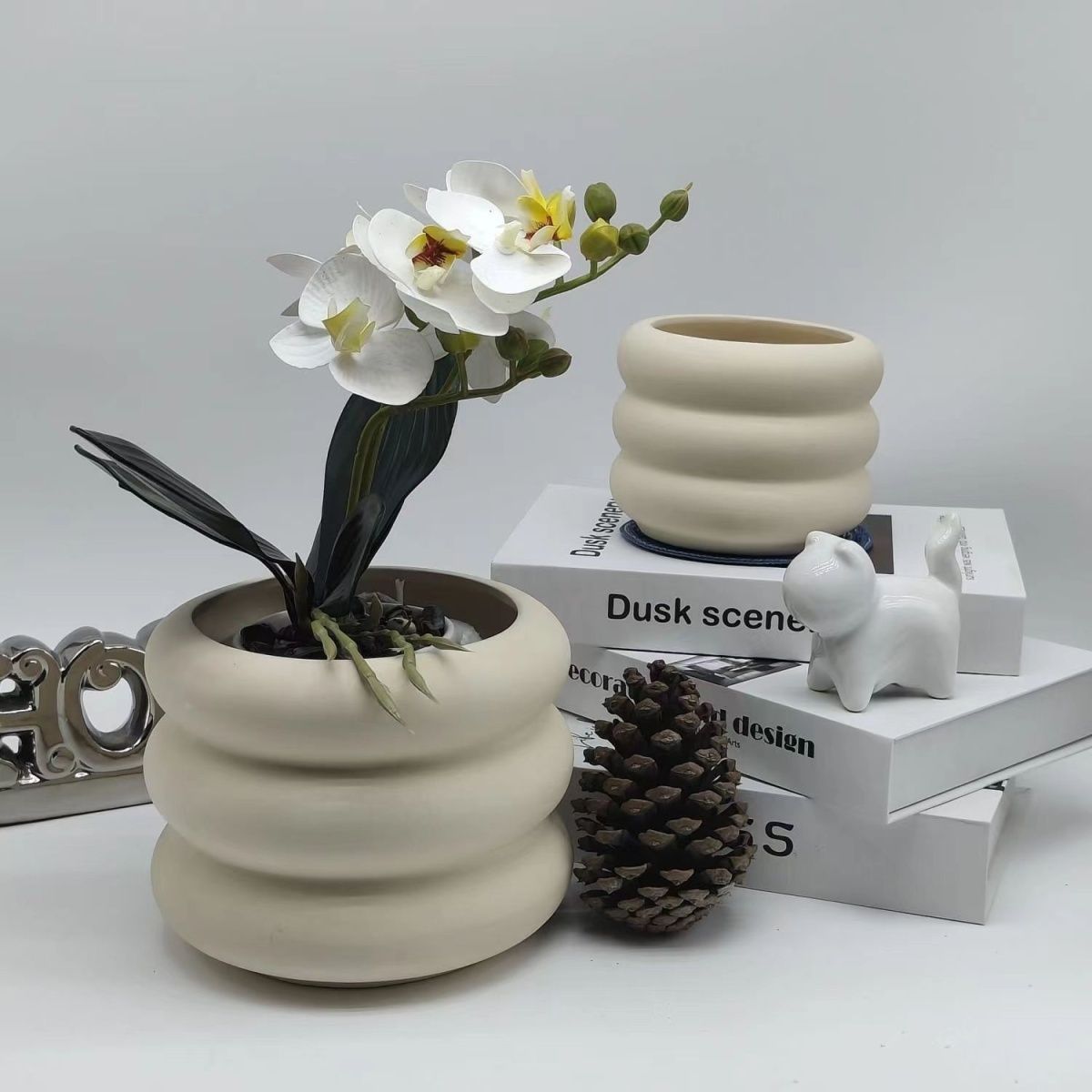 植木鉢陶磁器ドーナツ家庭用高顔値ins風軽贅沢高級感マット多肉植木鉢蝶蘭