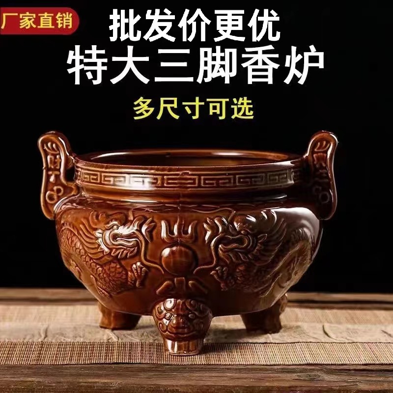 陶磁器の三足の古銅の色の釉薬の特大の香炉の寺院の祠堂は香の家庭の室内を挿して神に供えて卸売りします。