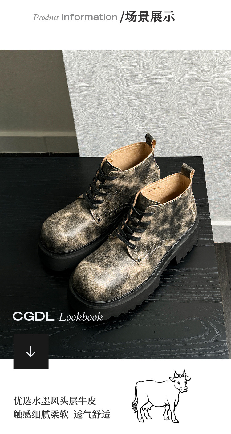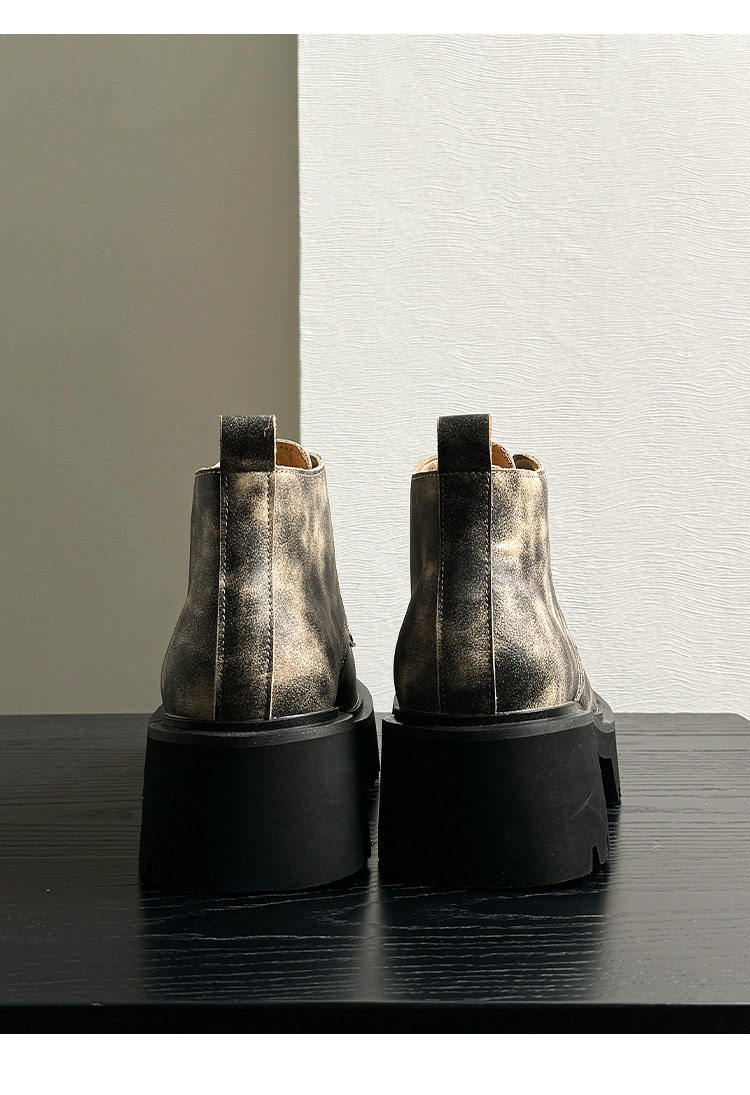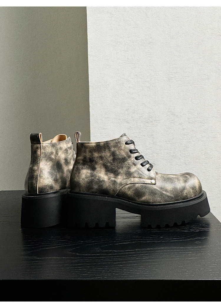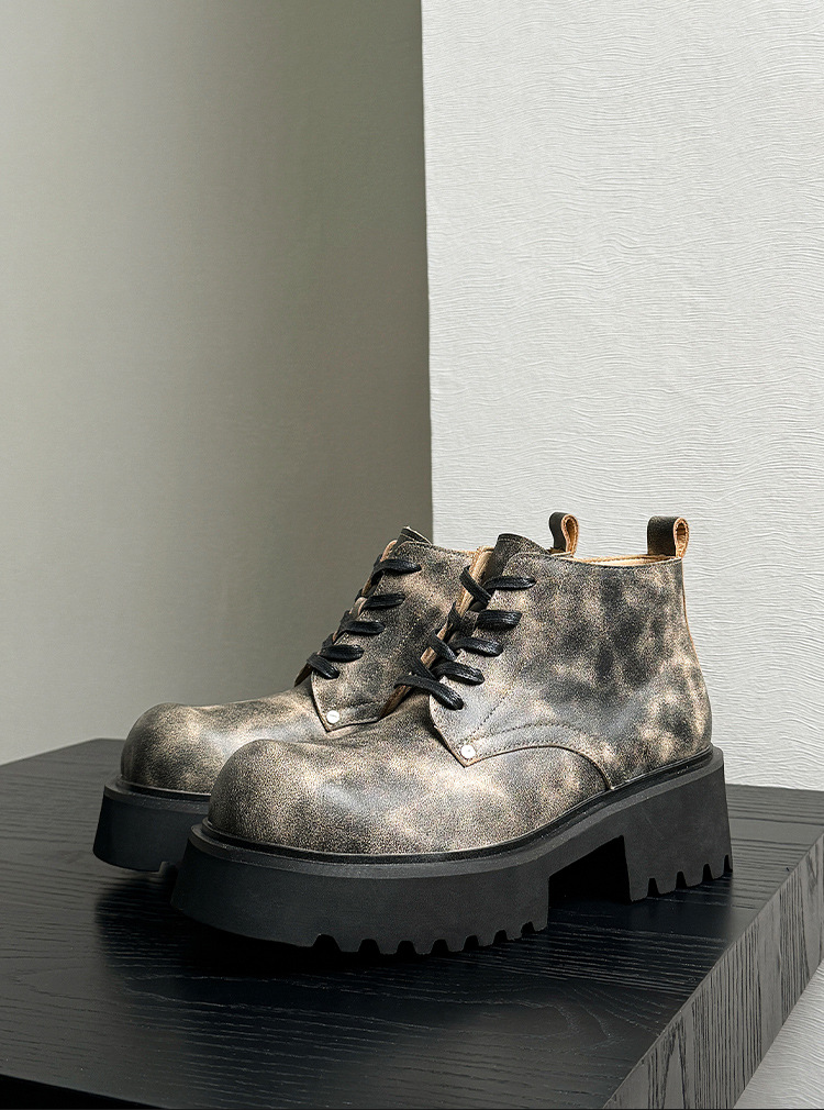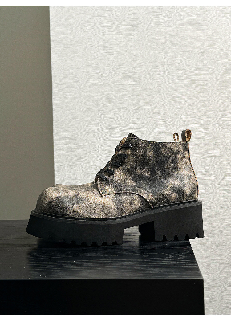 ニッチゴーストキング グッドイヤー 厚底 ブラック ダービーシューズ ウォッシュ加工 レトロ 本革 大きいサイズ シューズ カップル YS98