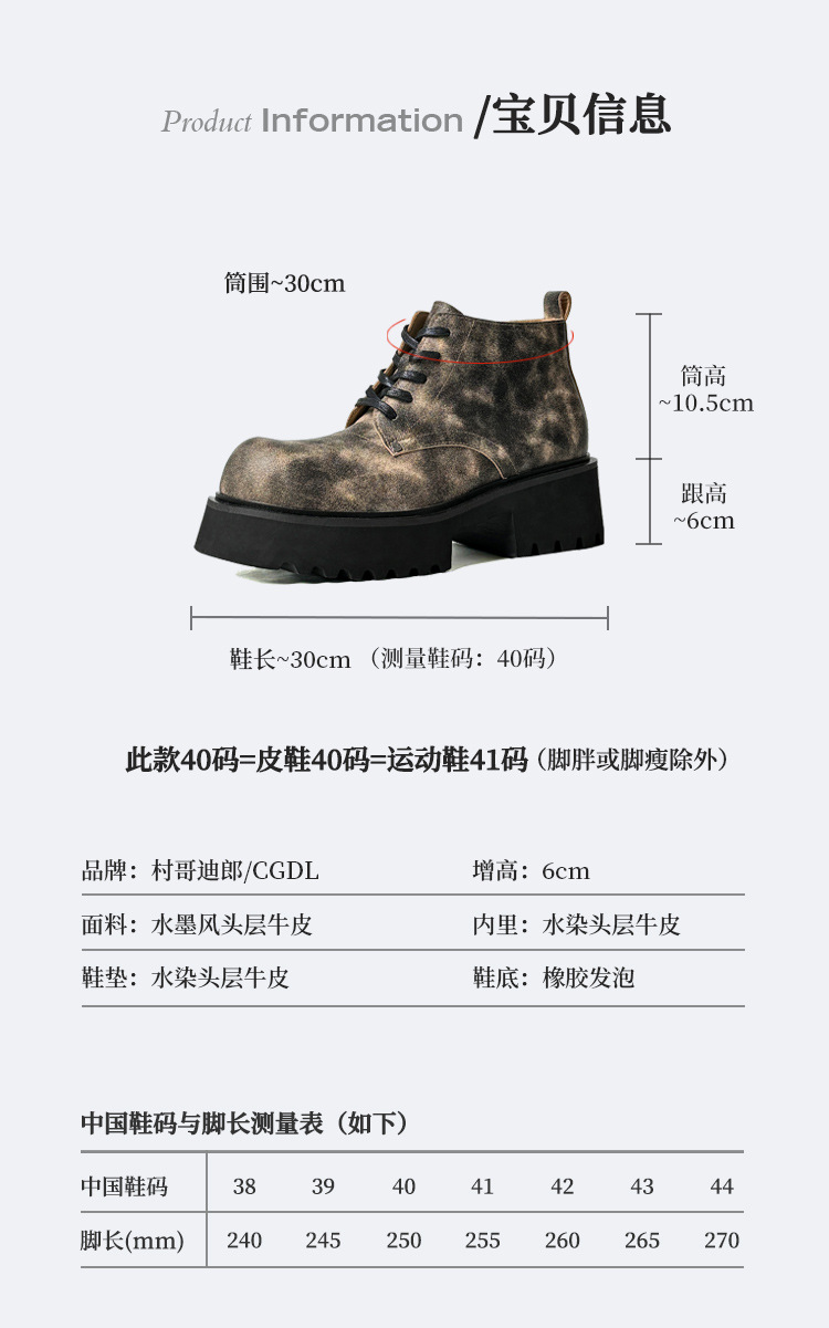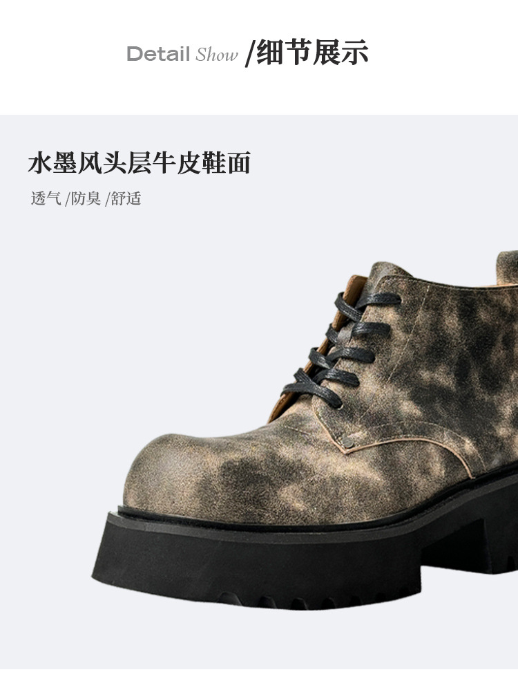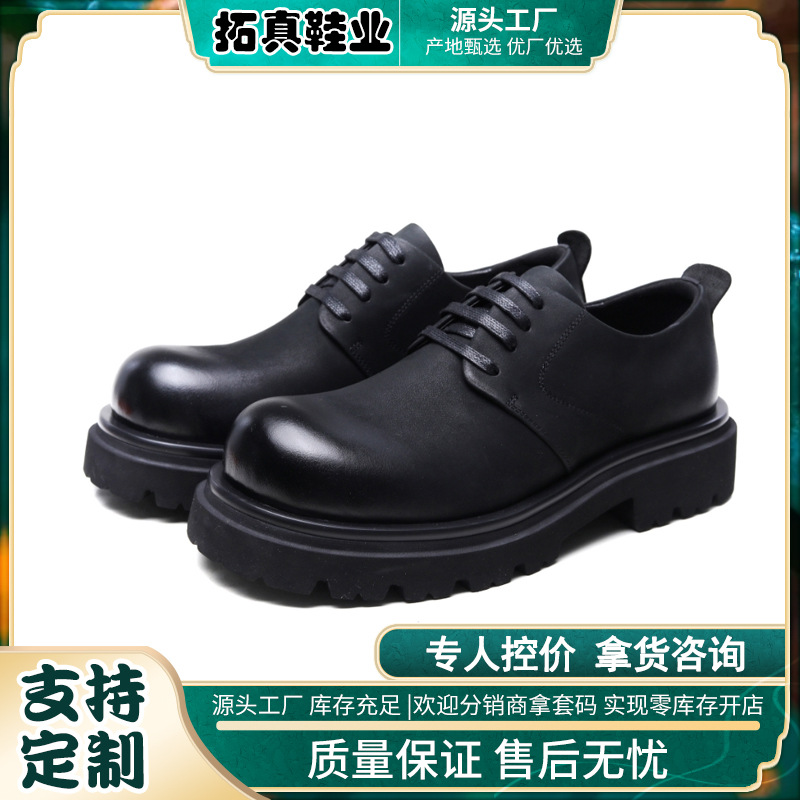 皮鞋头层牛皮男真皮软底内增高男鞋德比大头潮流百搭休闲磨砂皮鞋