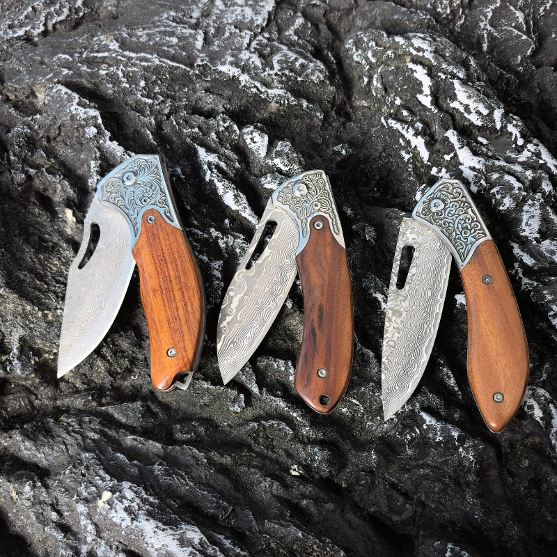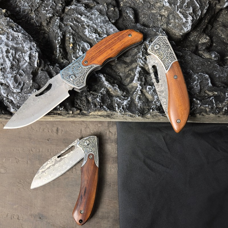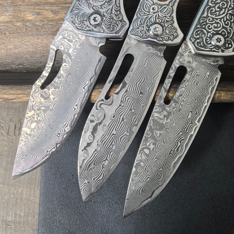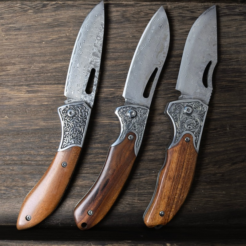 ダマスカス鋼折り畳みナイフはナイフを多く使っています。