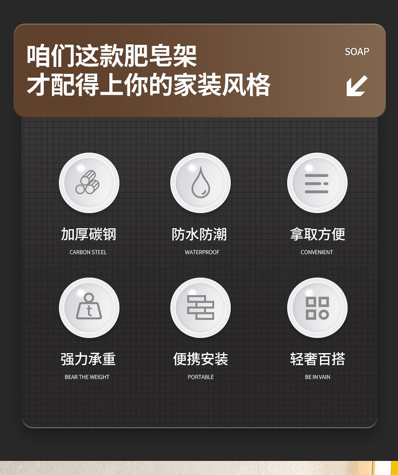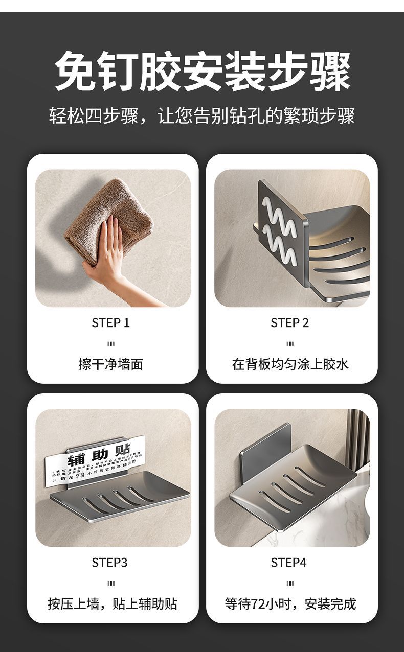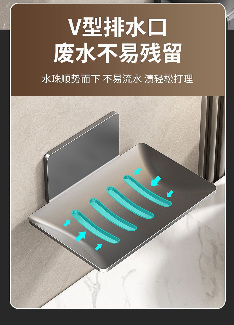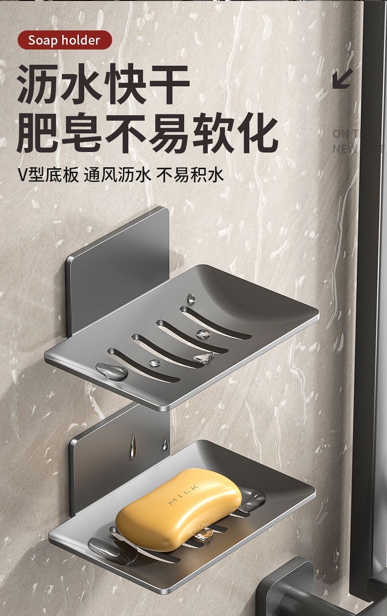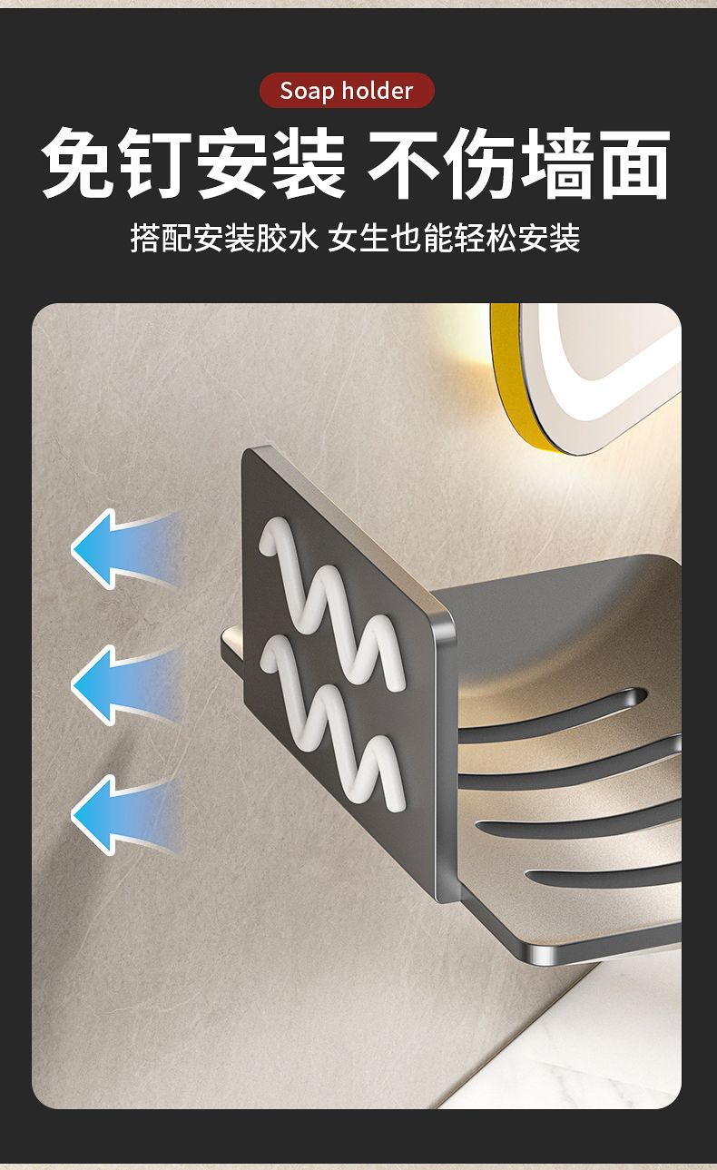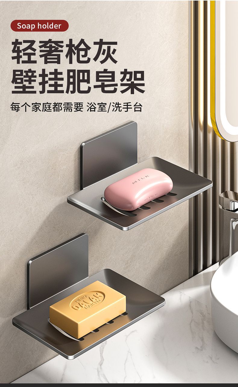 沥水410不锈钢肥皂盒挂壁粘胶壁挂式香皂盒免打孔挂墙肥皂碟架