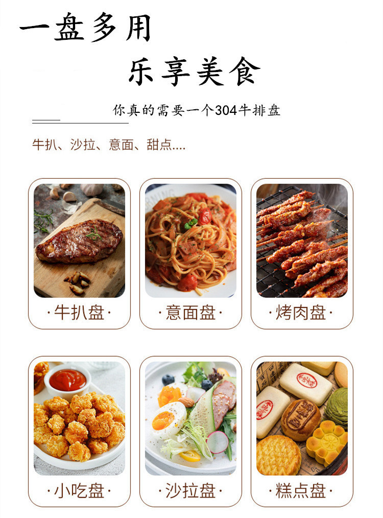 304不锈钢韩式烤肉盘商用圆盘简约自助餐盘西餐水果甜品小吃盘