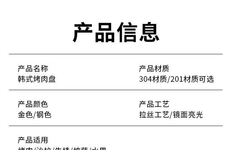 304ステンレス皿韓国式セルフ焼肉皿工芸品トレイケーキ皿洋食皿バーベキュー皿