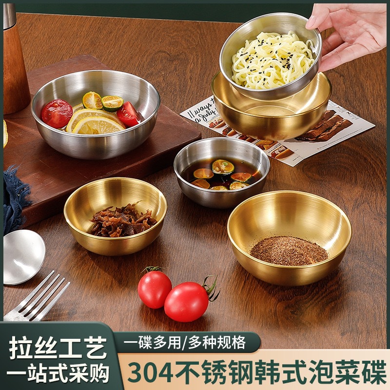 韓国風304ステンレス製ソース・調味料皿、ステンレス製小鉢、ピクルスボウル、皿、金色の韓国料理
