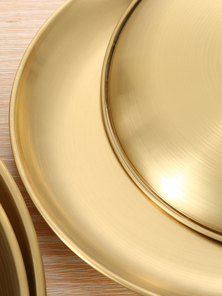 キャンプ韓国式伸線ステンレス円盤金色カフェトレイ果物皿ケーキ皿皿皿皿皿皿浅皿
