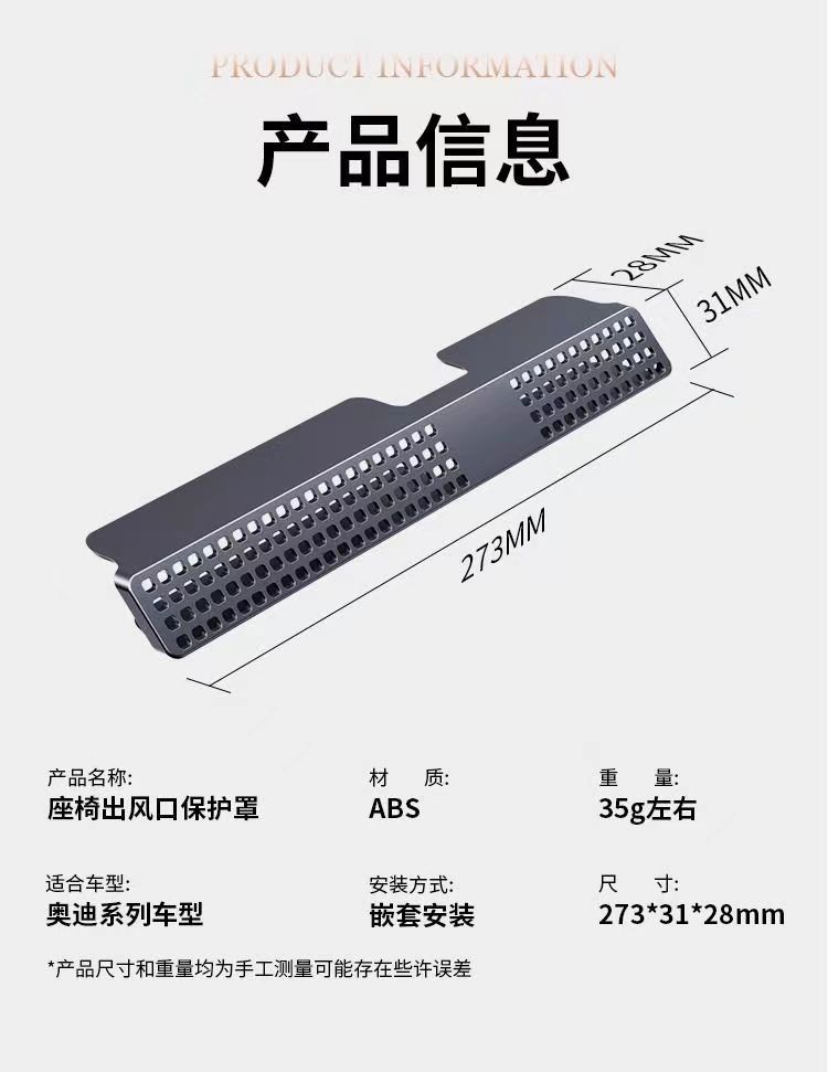 仕様 【19-24モデル A6/A6L】エアアウトレット保護カバー プラモデル,【17-24モデル A4/A5】エアアウトレット保護カバー プラモデル,【18-24モデル Q5/Q5L】エアアウトレット保護カバー プラモデル,【16-24モデル Q7/Q8】エアアウトレット保護カバー プラモデル,【14-24モデルA3】エアアウトレット保護カバー プラモデル,【18-24モデル Q2L】エアアウトレット保護カバー プラモデル,【19-24モデル Q3】エアアウトレット保護カバー プラモデル