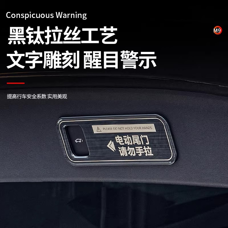 Wenjie M9 電動テールゲート反射警告ステッカーに適しています。ステンレス鋼素材のアップグレードされたテールゲート プロンプト ステッカーです。