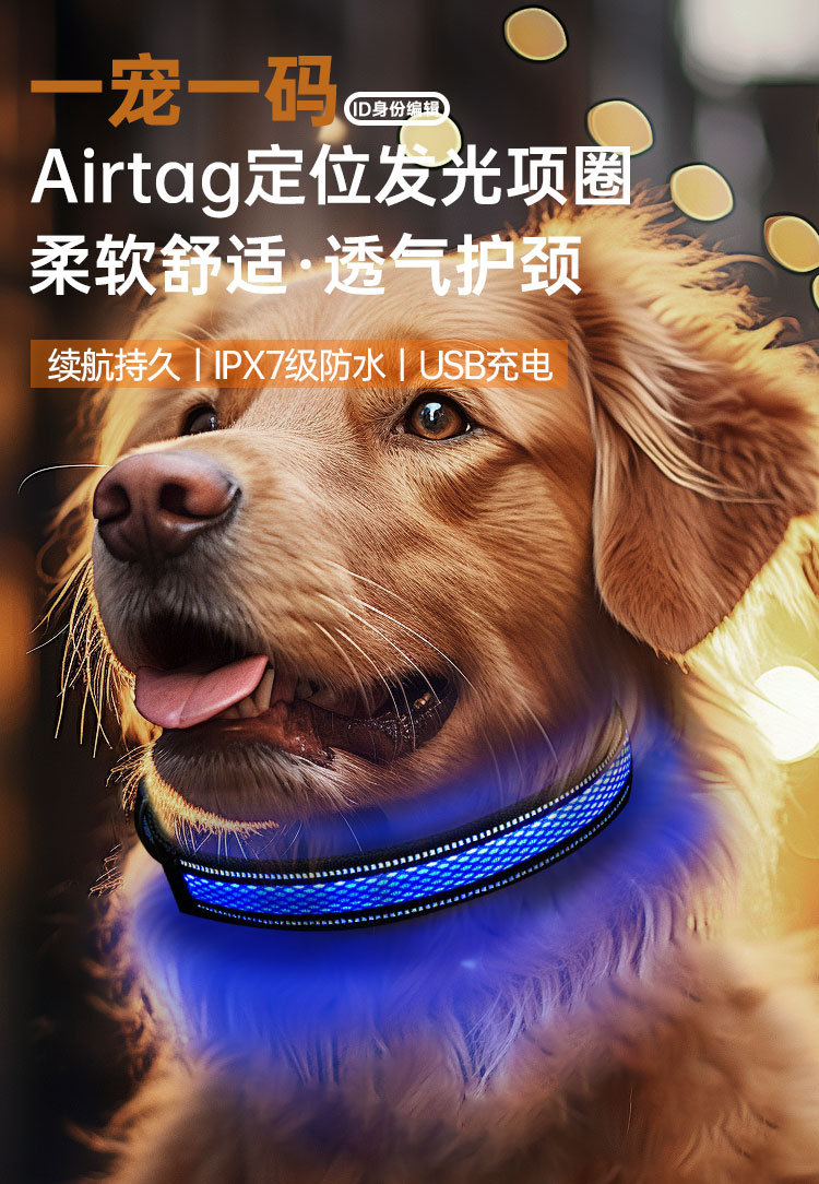クロスボーダーairtag犬首輪type-c充電防水発光ペット首輪ロケーターセット紛失防止首輪