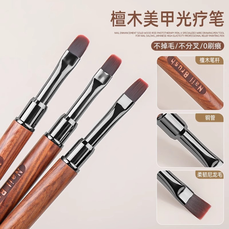 大きい丸い爪の筆の工具の日本式の檀木の大きい平頭の光の治療の筆のフランスの線引きの筆のセットの美甲店の専用です。