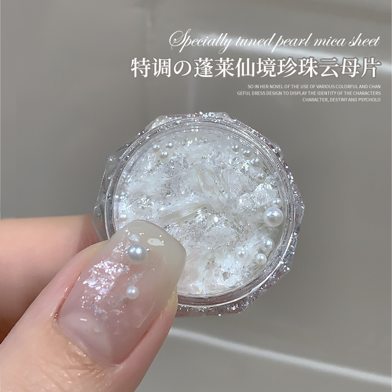 白色欧泊粉美甲饰品网红爆款珍珠云母片美甲素材混合圣诞雪花配饰