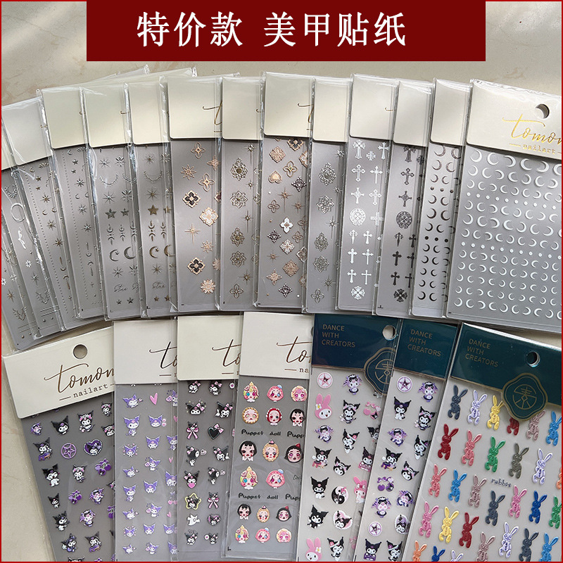 レトロなネイルシール卸売りクロ心クロス布チェラティ風箔押し銀立体爪貼りアクセサリー