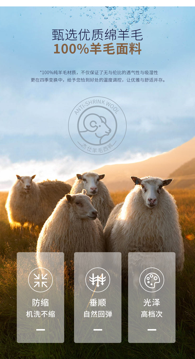 傑仕100% 男性ウールのズボンは、紺色のストレートビジネスの快適な男性スーツのズボンを洗うことができます