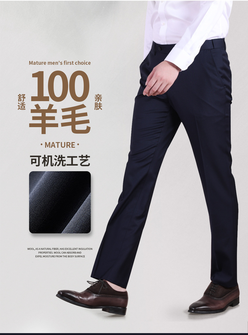 洗濯できる純ウールズボン男性100% ウール職業正装ビジネス高級感男性スーツズボンストレートパンツ