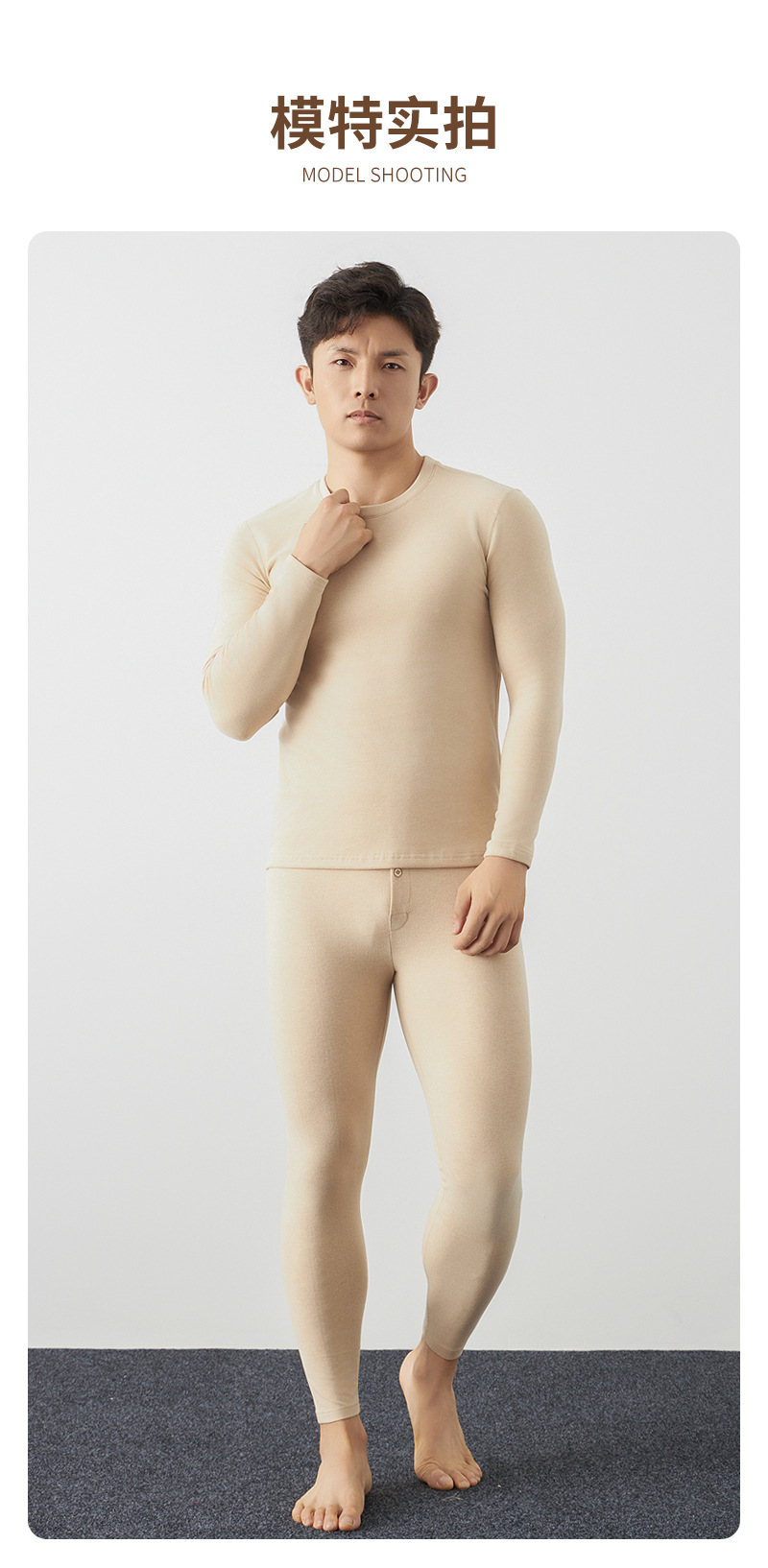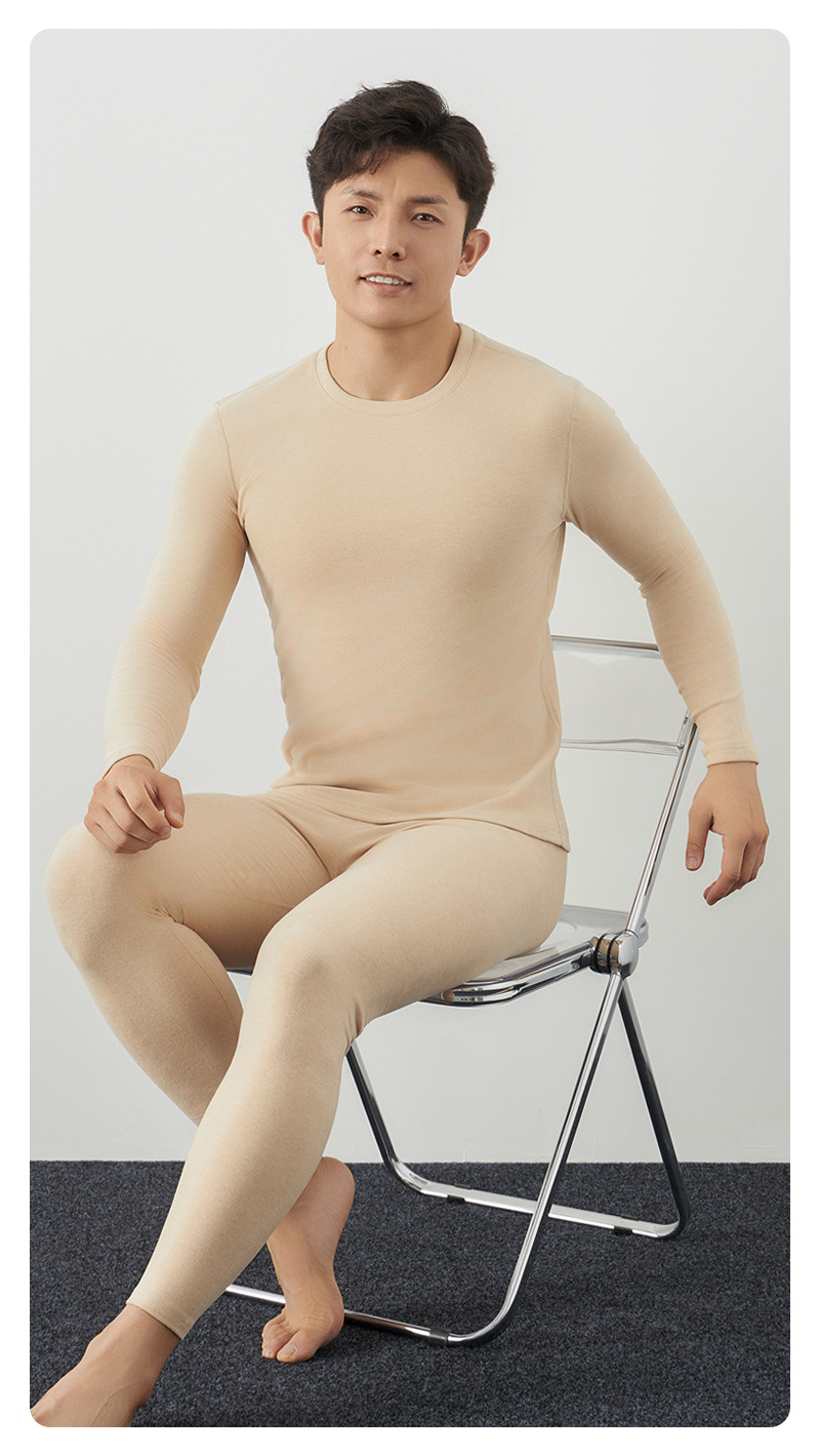 天然カラー綿秋衣秋ズボン男性秋冬新作ロングコットン保温下着純綿保温服セット男性モデル