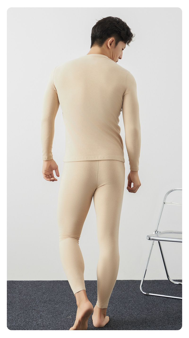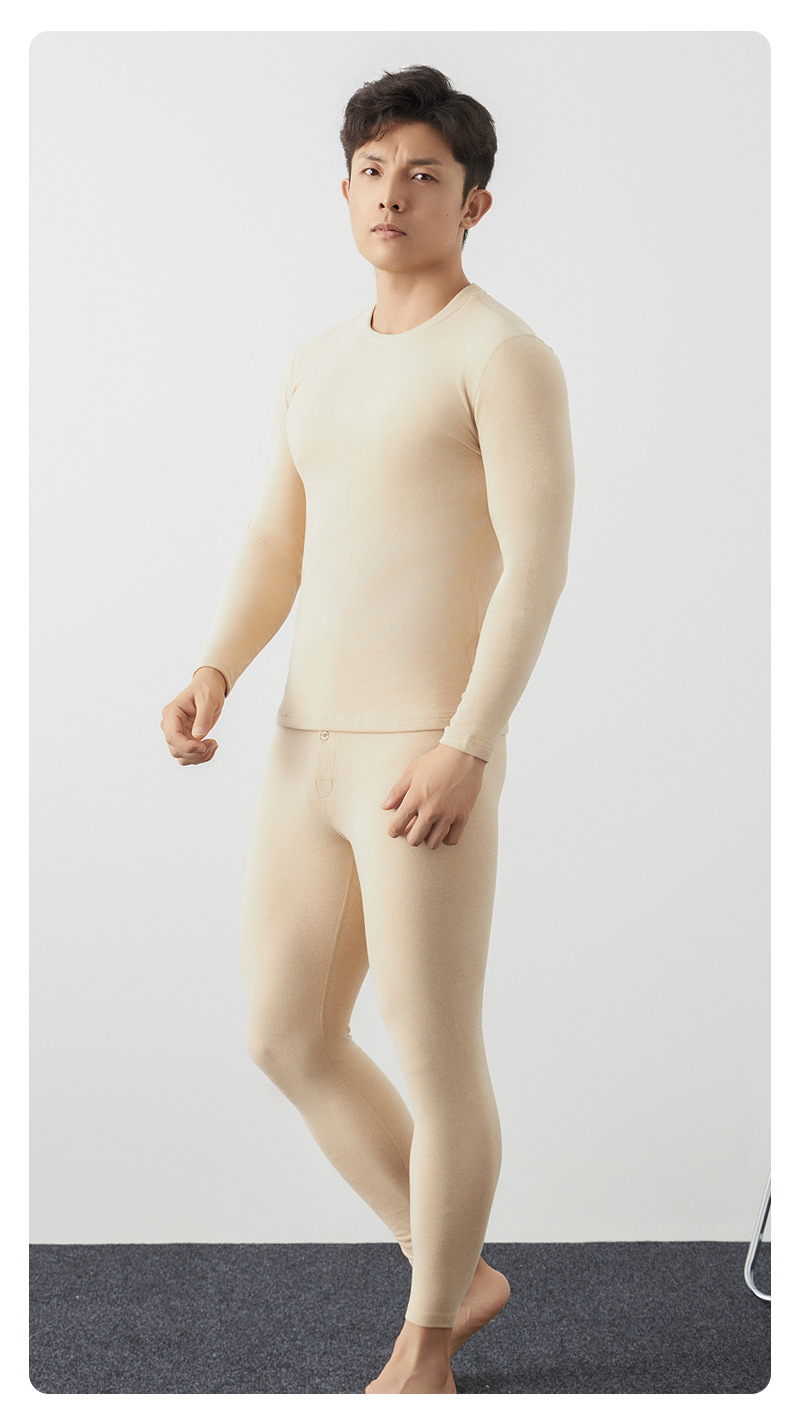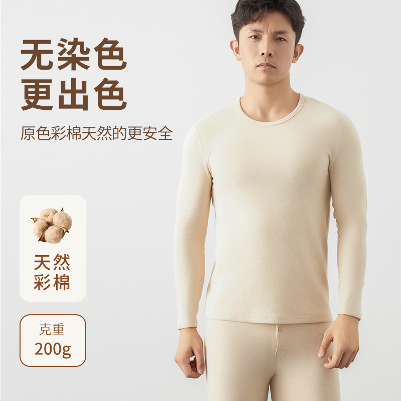純綿秋衣秋ズボン男性秋新作天然カラー綿原色保温下着男性ロングコットン保温服セット
