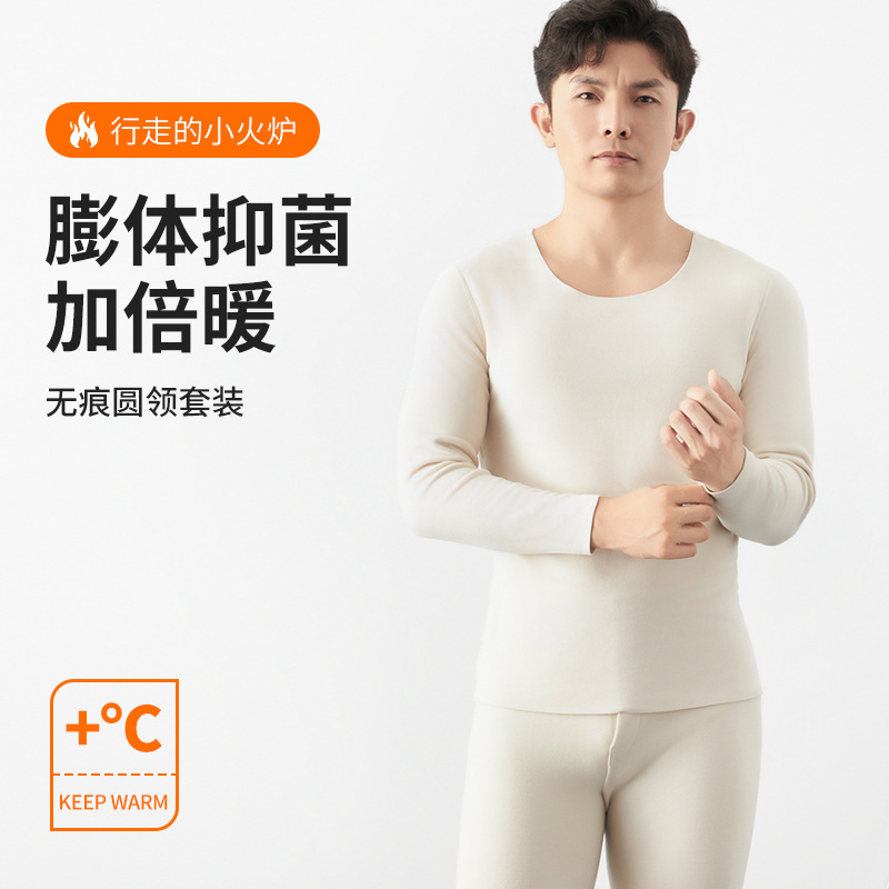 保温下着男秋冬新作依翡翠糸抗菌秋衣秋ズボン徳絨毛自発熱内に保温服セット
