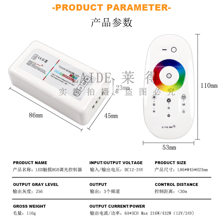 仕様 モノクロリモコンタッチ調光器,2色リモコンタッチ調光器,RGBリモコンタッチ調光器,RGBWリモコンタッチ調光器