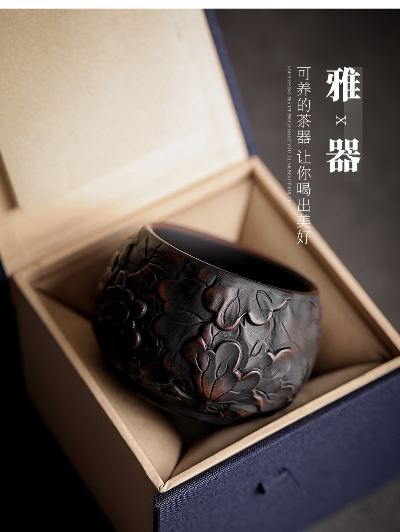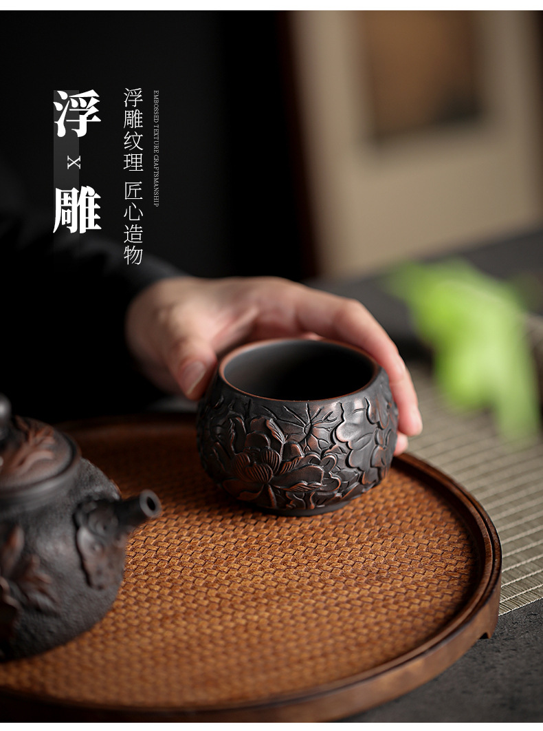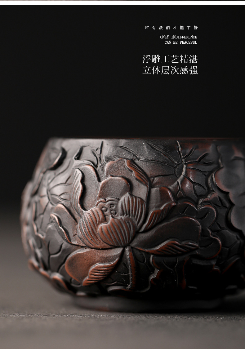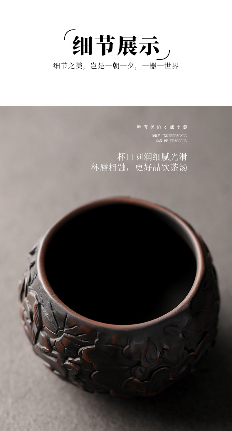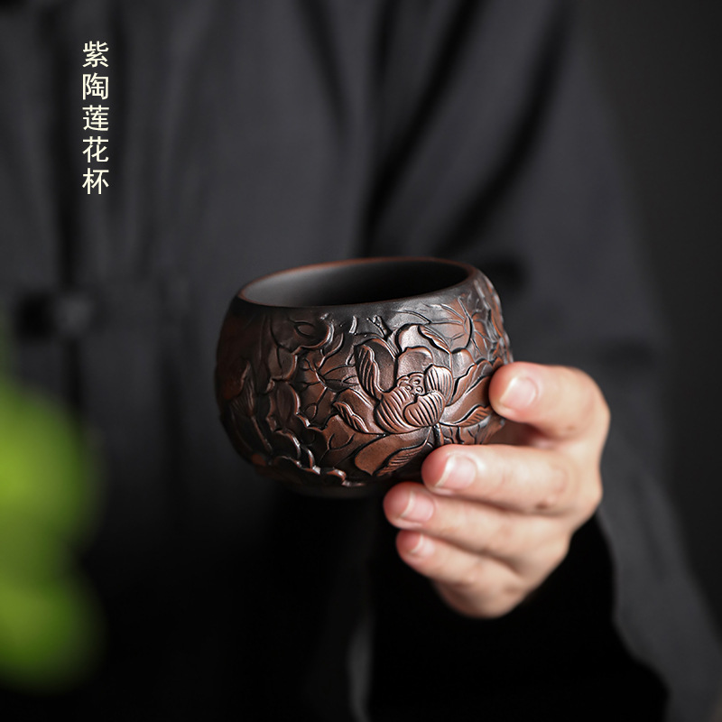 紫陶復古手作り彫刻蓮花カップ家庭用リビングルームの主人カップ