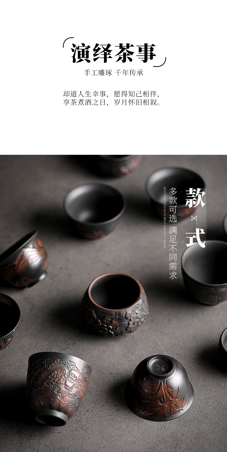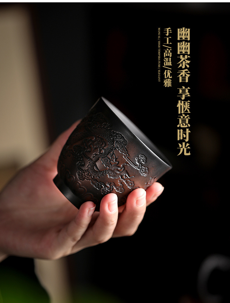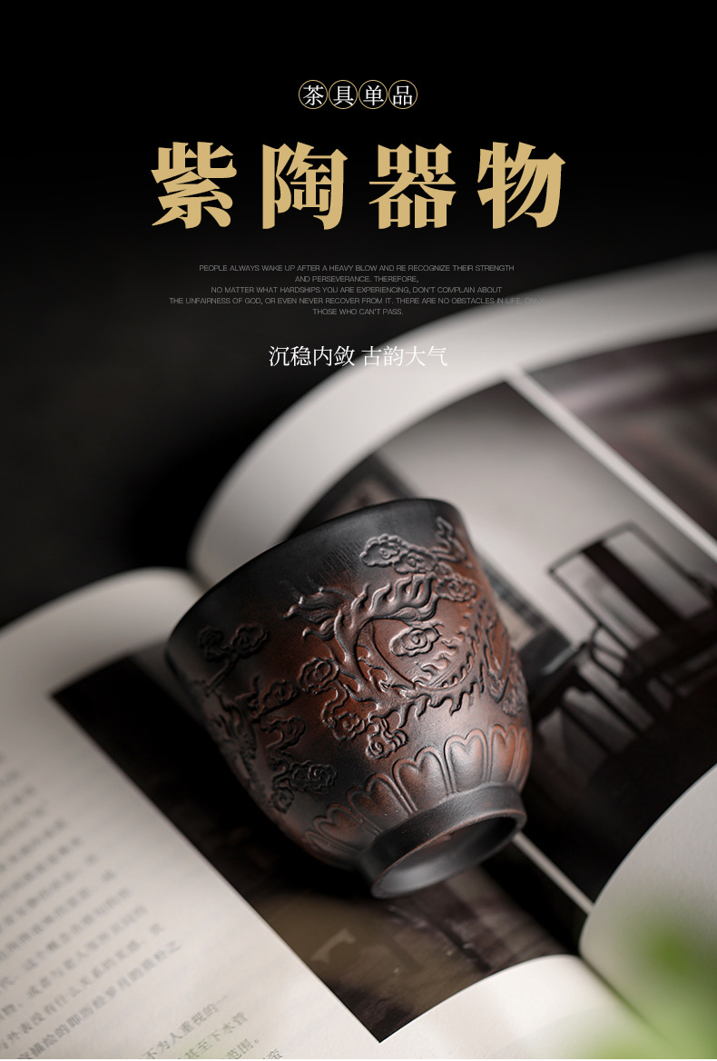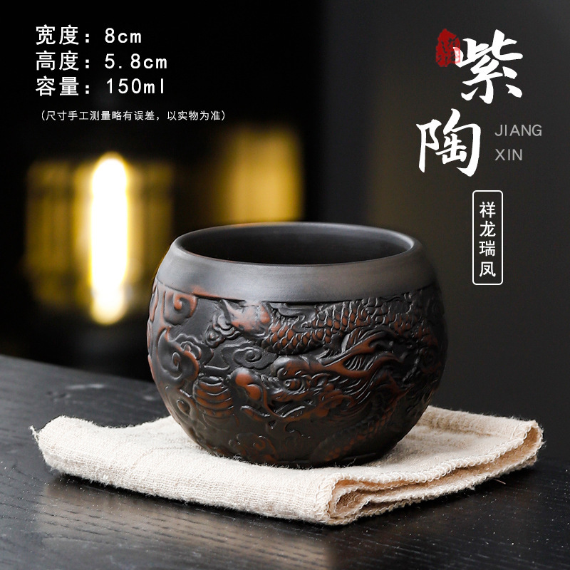 建水紫陶浮雕祥龙品茗杯手工茶杯主人杯高端泡茶器皿家用有档次