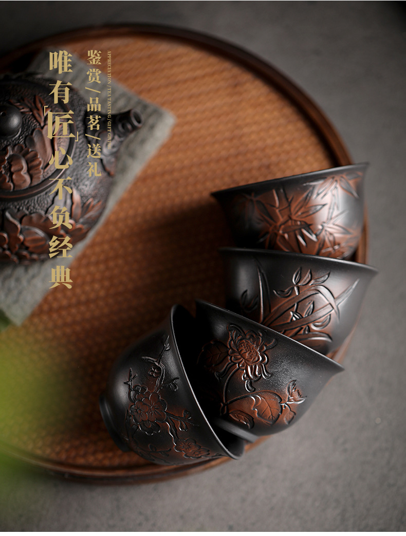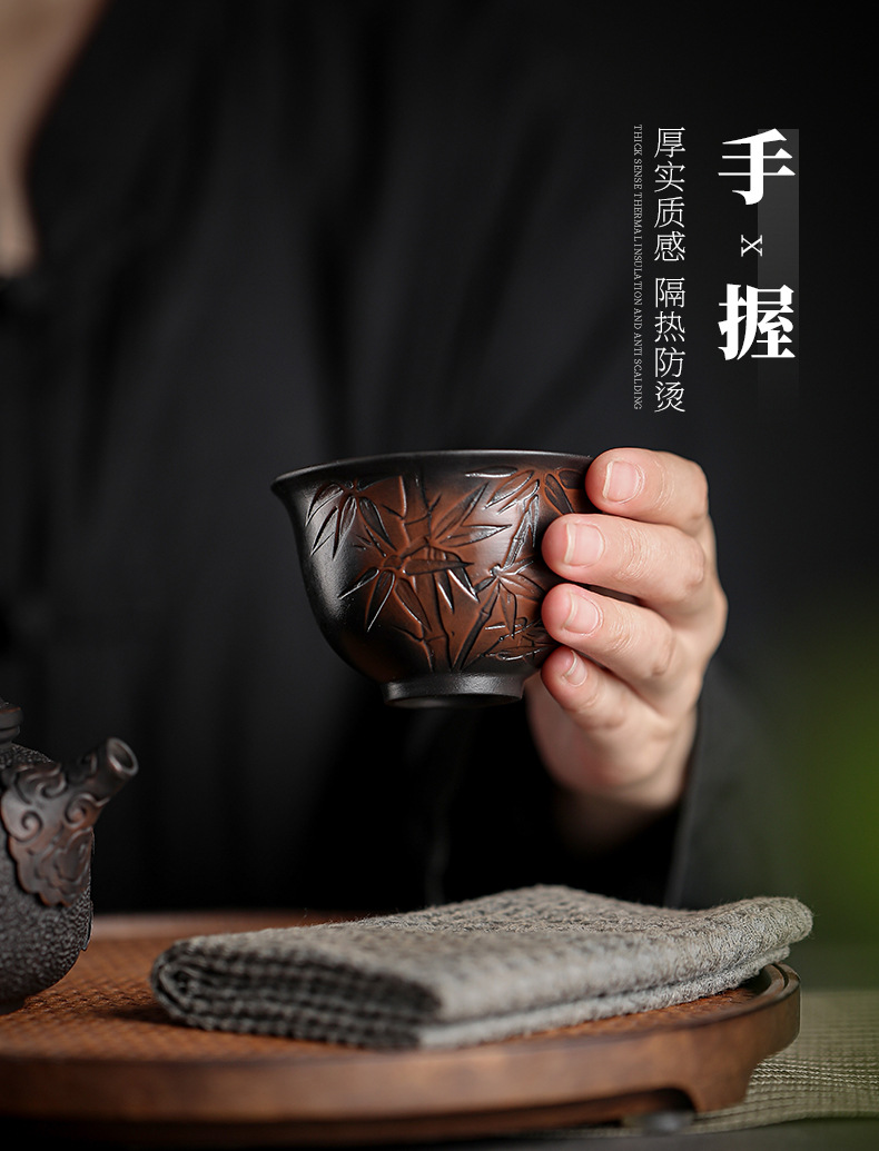 紫陶品茗杯主人杯単杯茶杯純手彫刻大規模工夫茶具茶杯陶磁器興陶