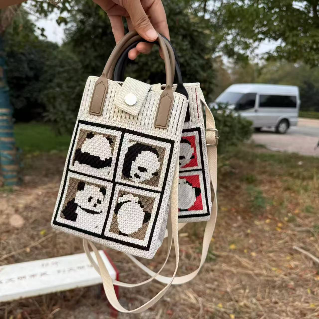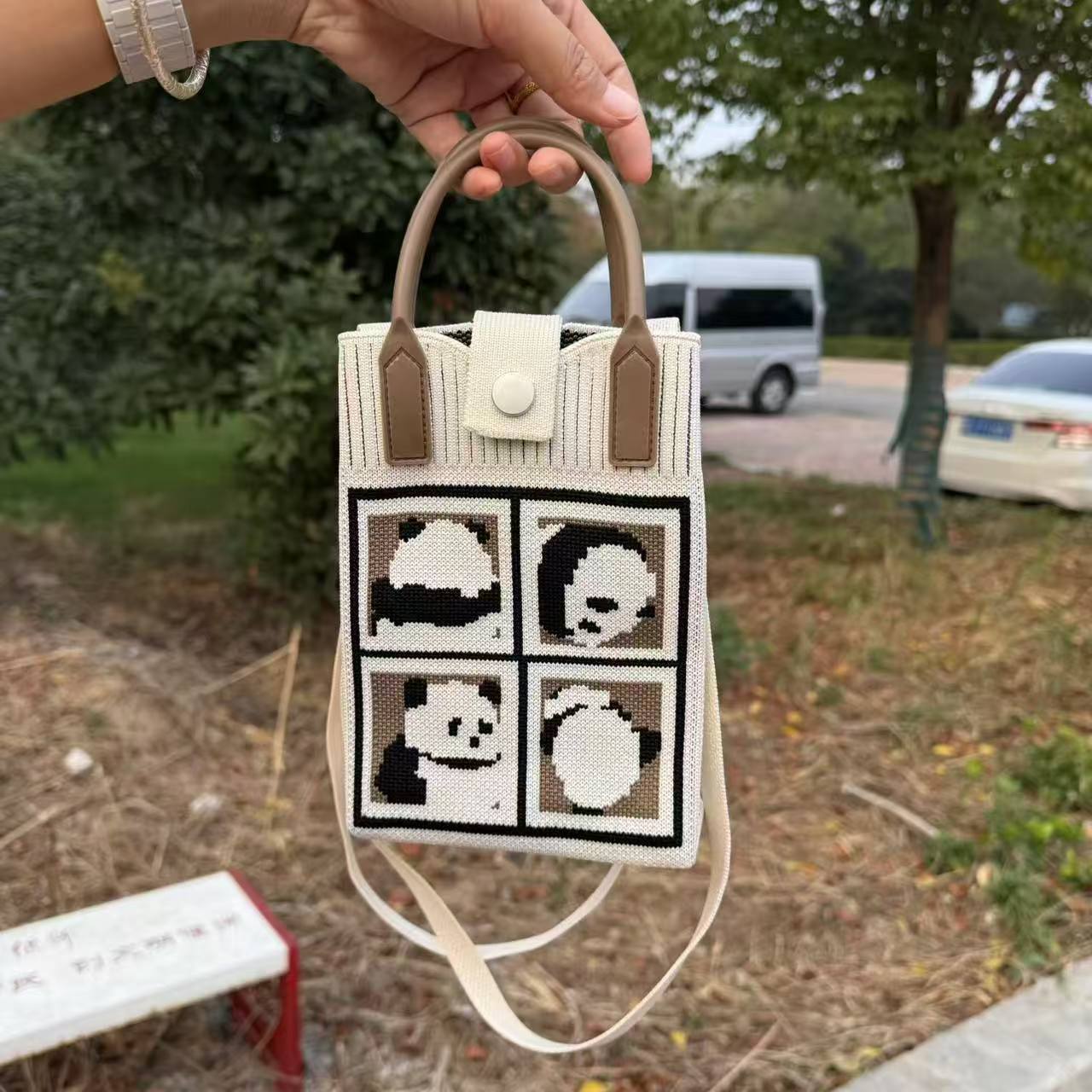 ニットのカバンは個性的でカジュアルな新型の可愛いパンダを持っています。