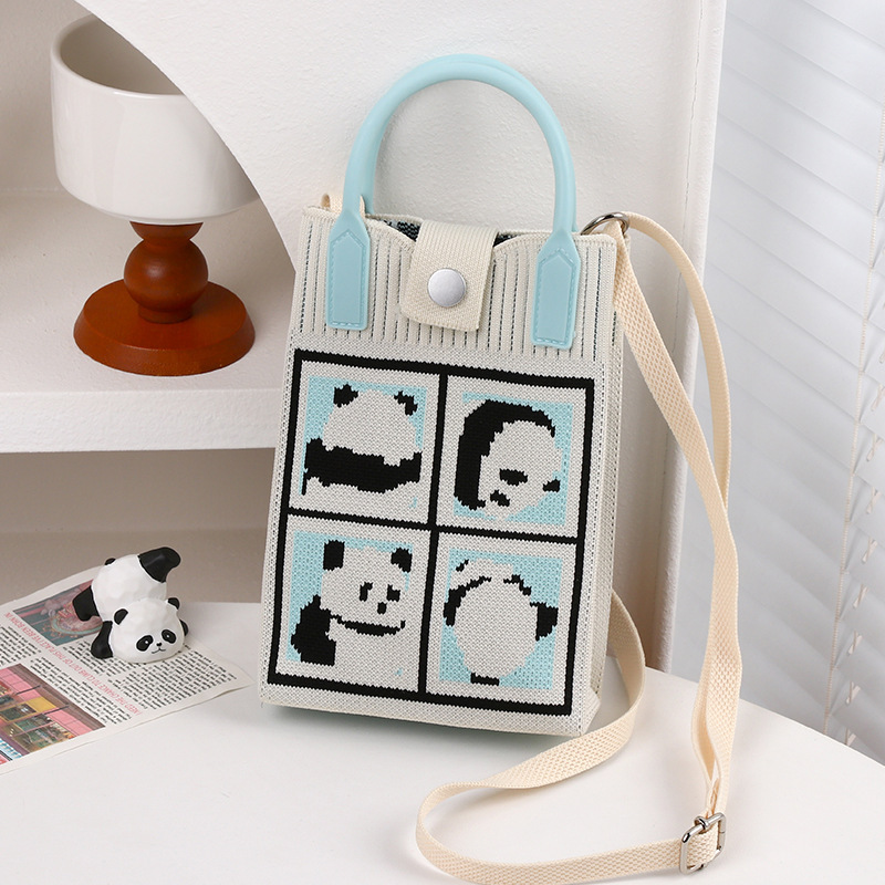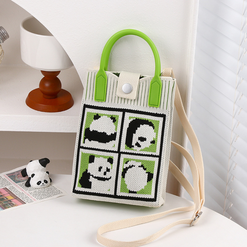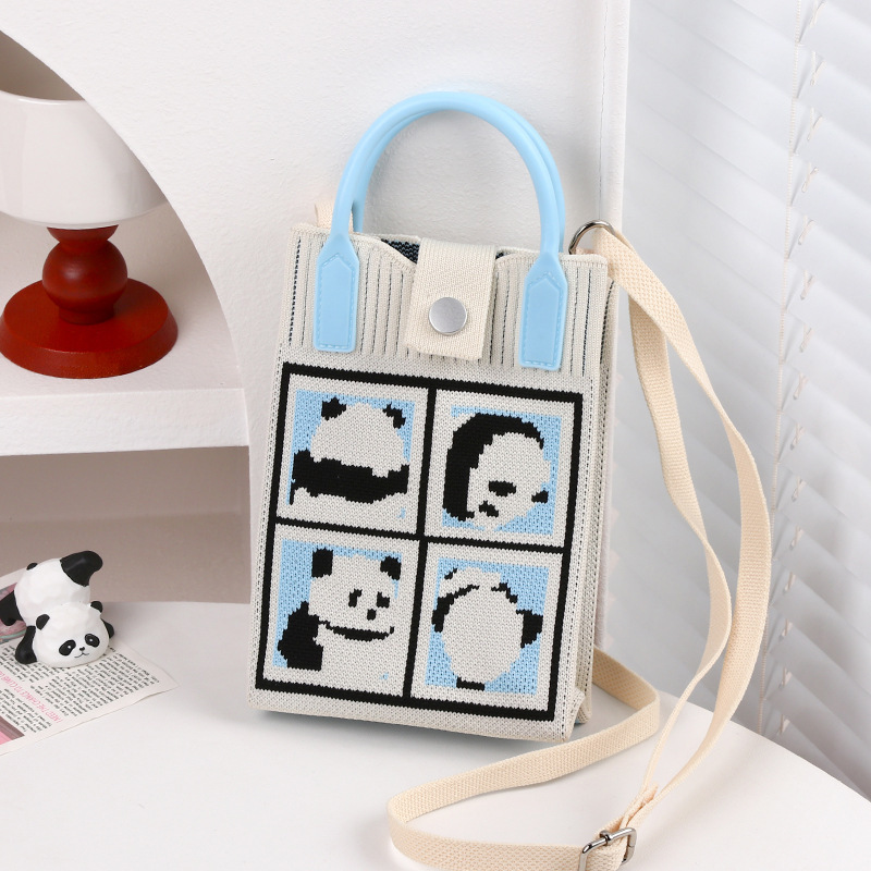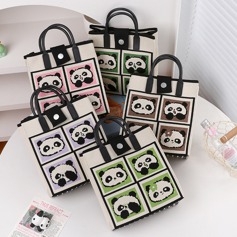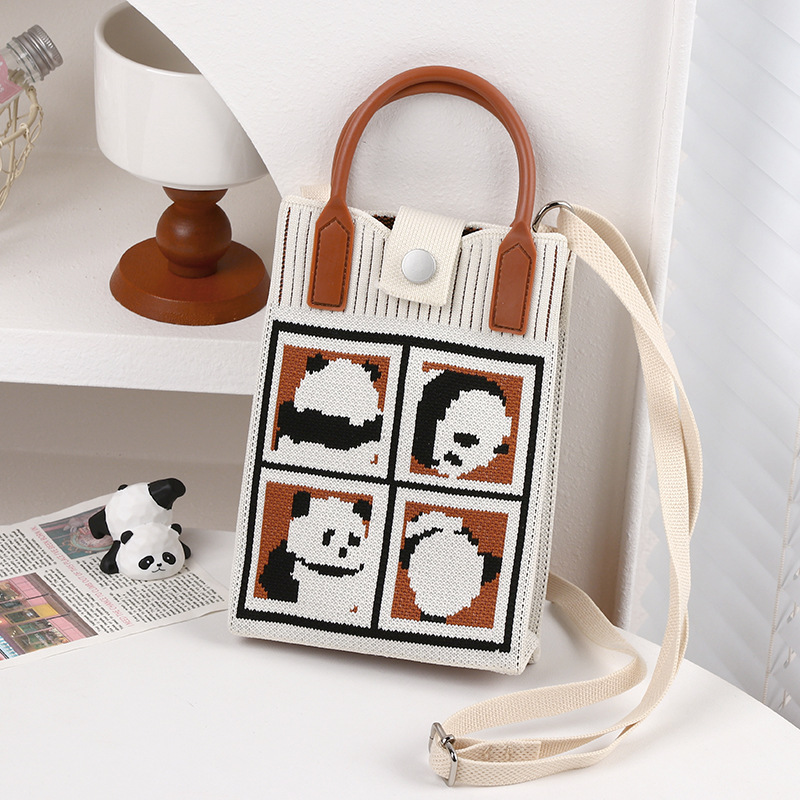文芸国風托特包お土産日常カジュアルな女性ニットバケツバッグかわいいパンダのハンドバッグ