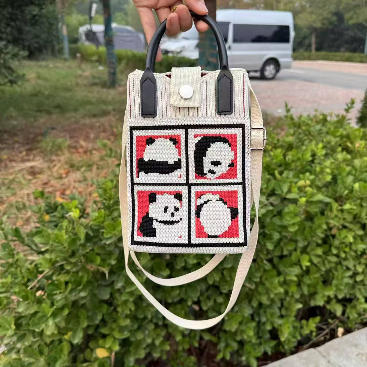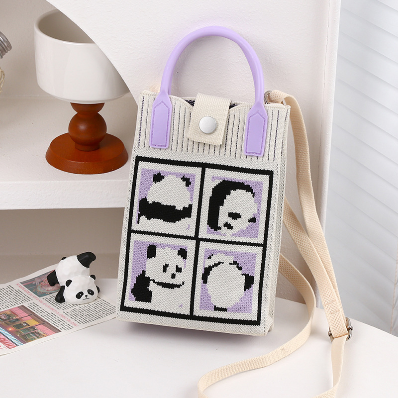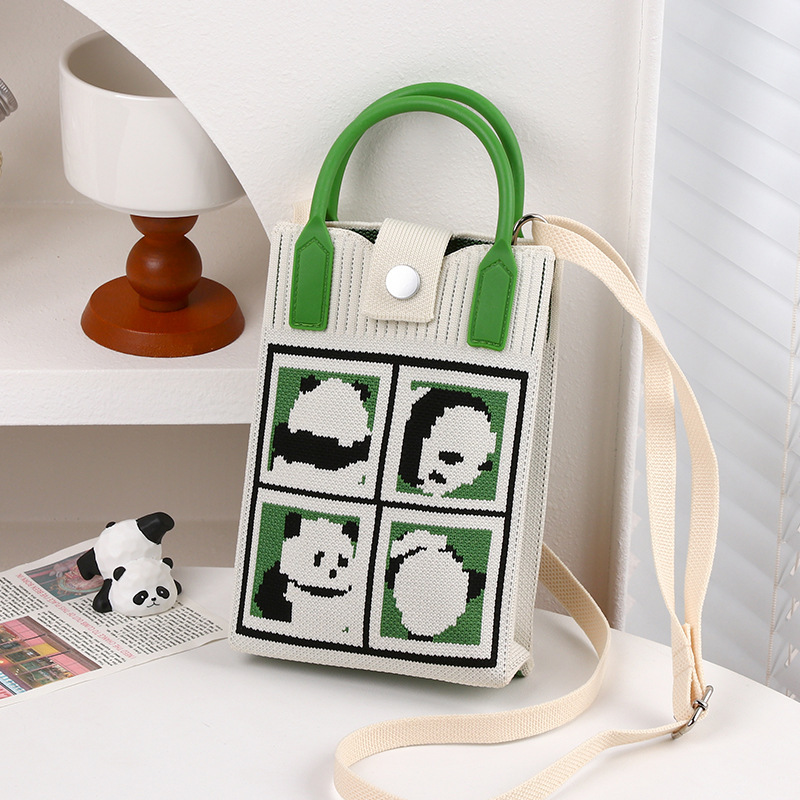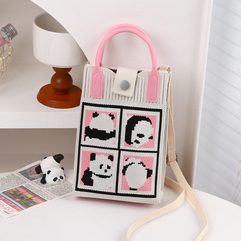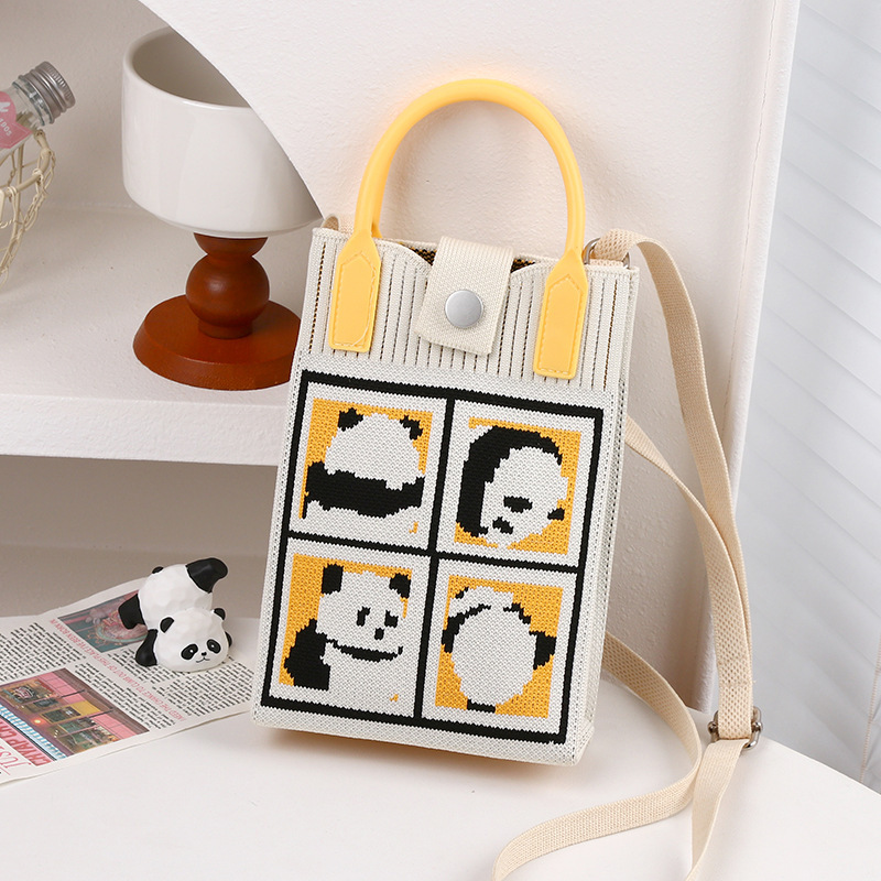 文芸国風托特包お土産日常カジュアルな女性ニットバケツバッグかわいいパンダのハンドバッグ