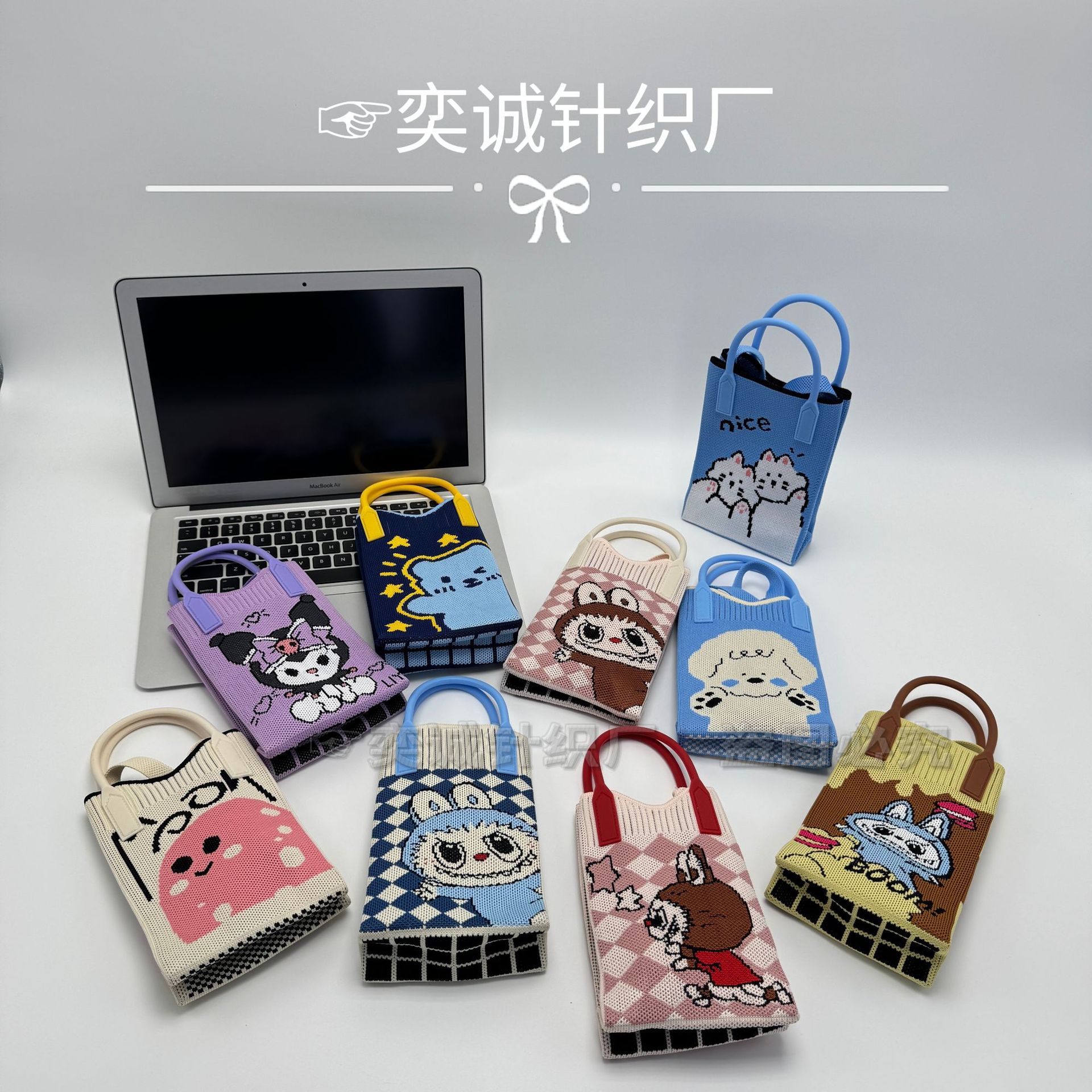 韓国の小衆かわいいinsアニメ2025ニットバッグは肩の文芸旅行に必要なニットバッグを斜めに掛けている