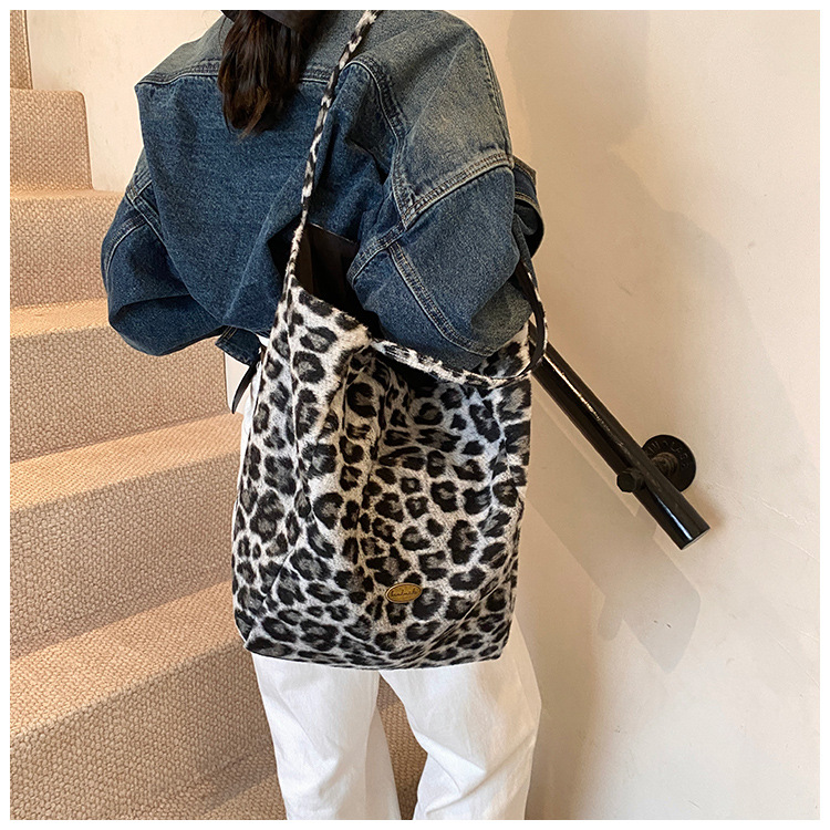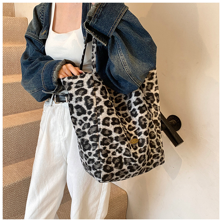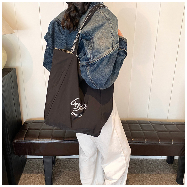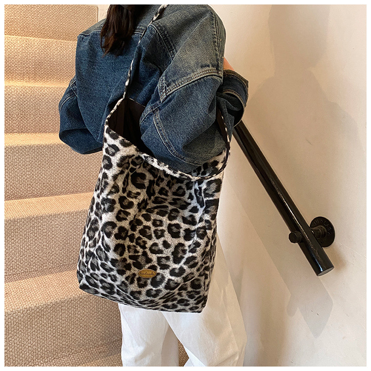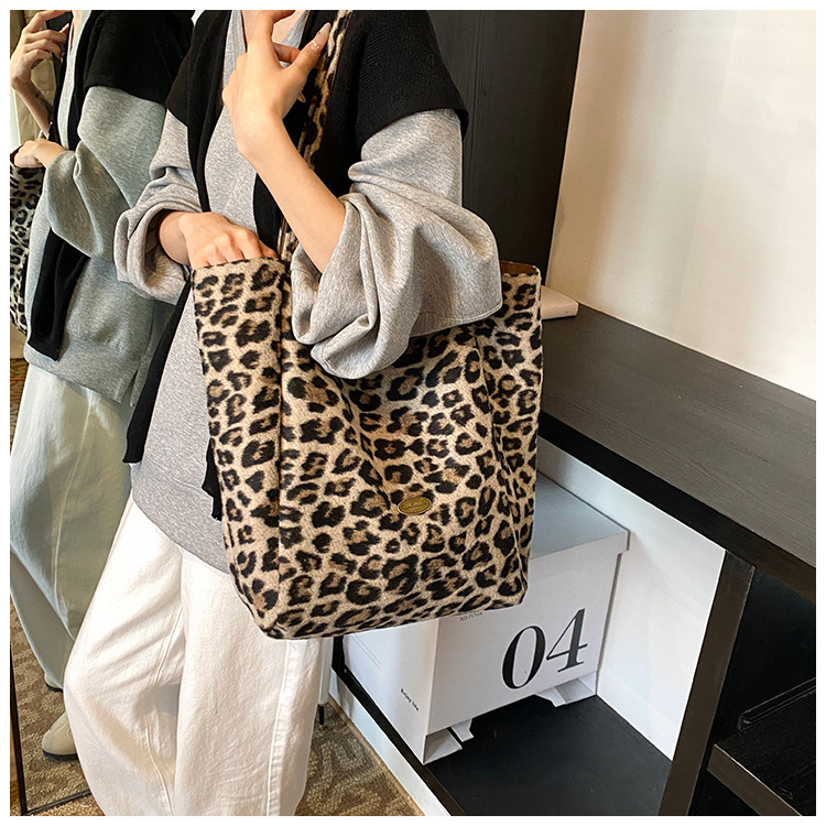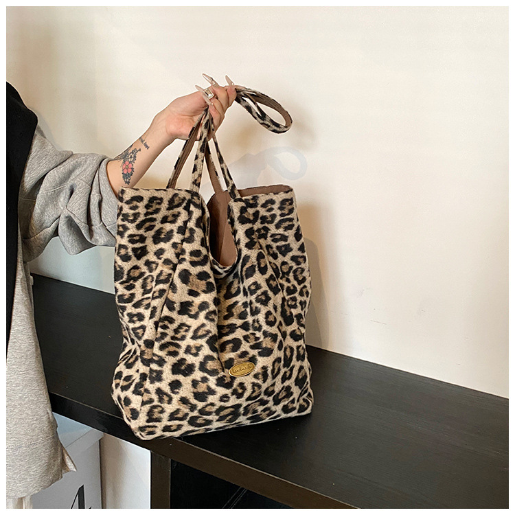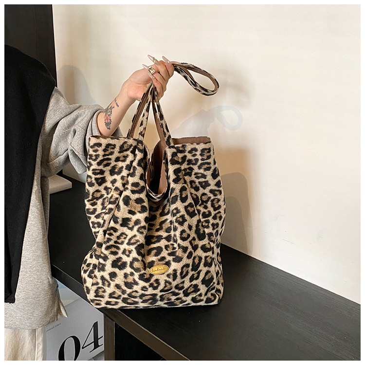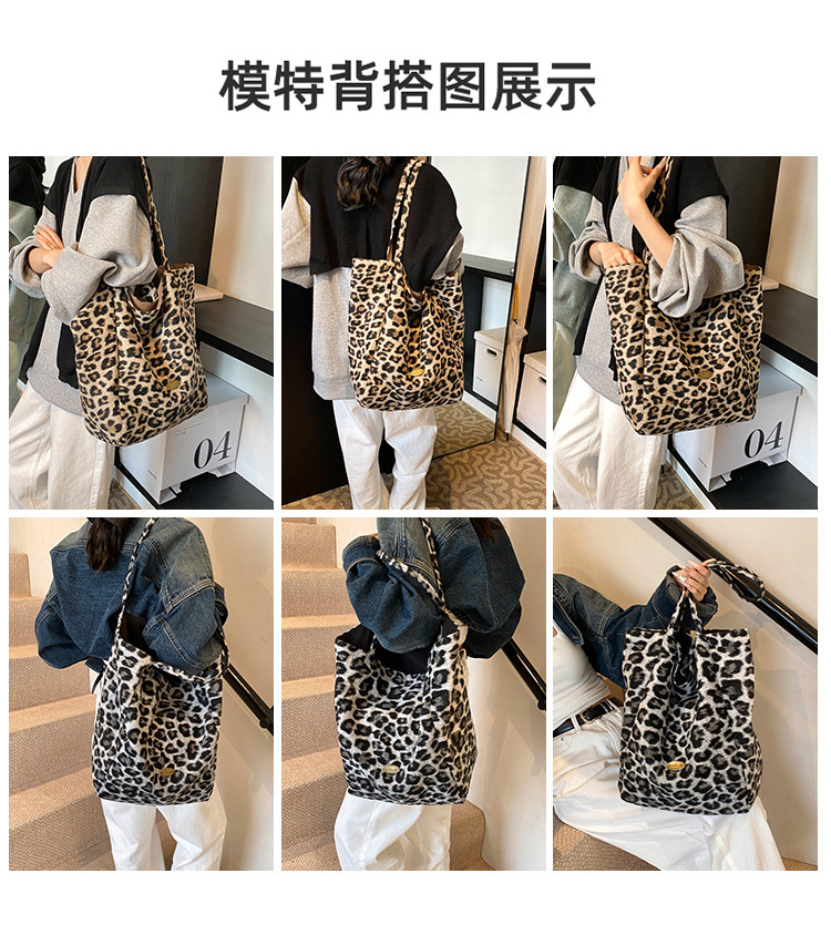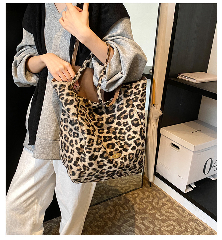 新品大衆デザインヒョウ柄キャンバスバッグカジュアル大容量両面用ショルダーバッグレディース通勤トートバッグ