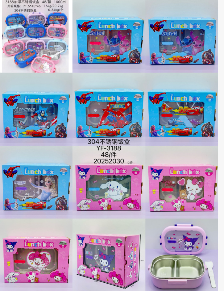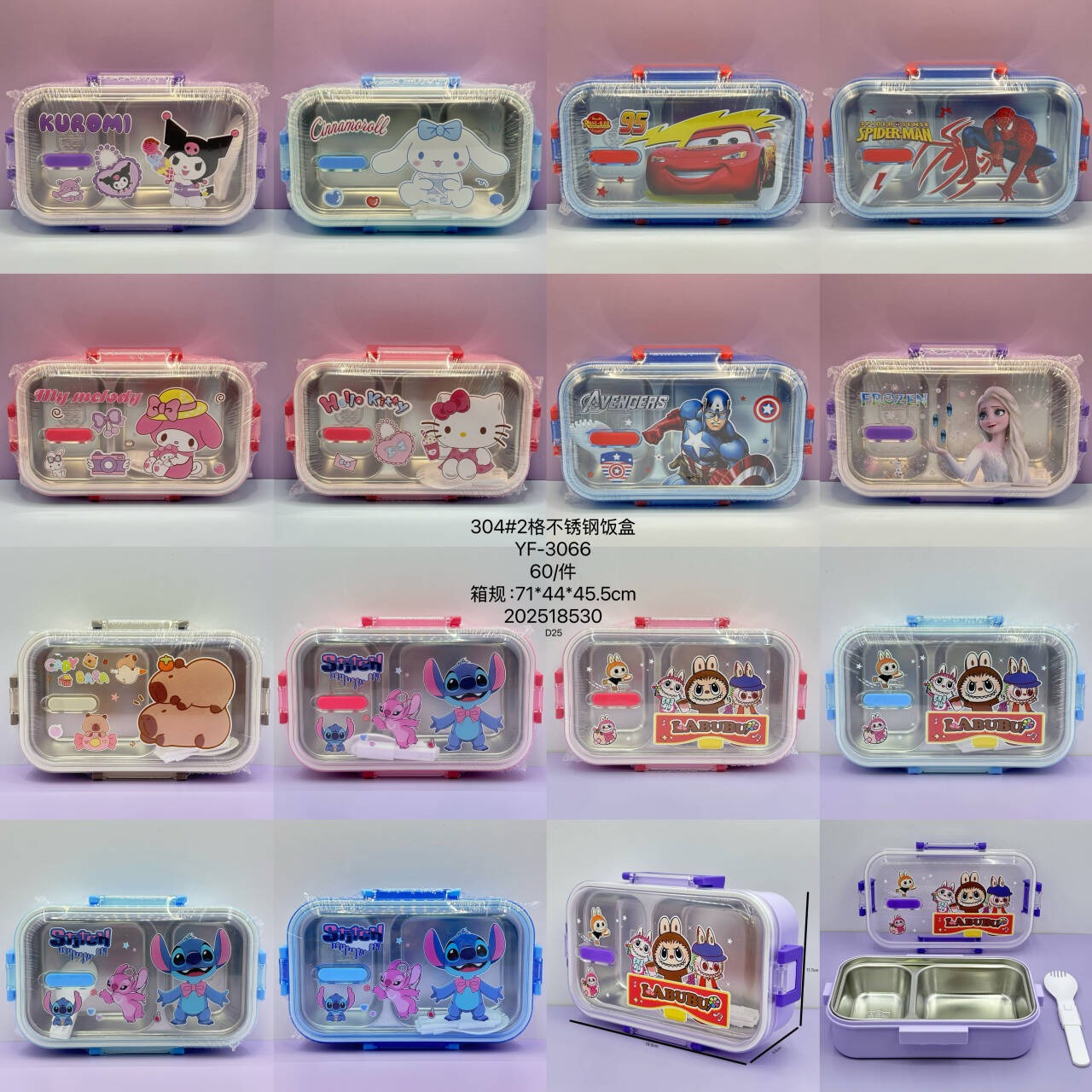 かわいいアニメ3066角型2格304ステンレス弁当箱学生外出学生弁当箱弁当箱弁当箱