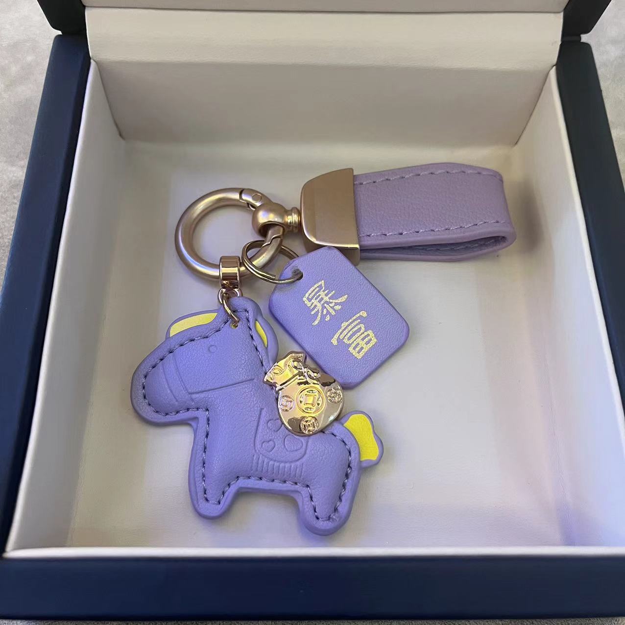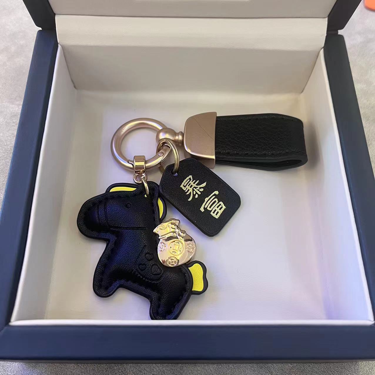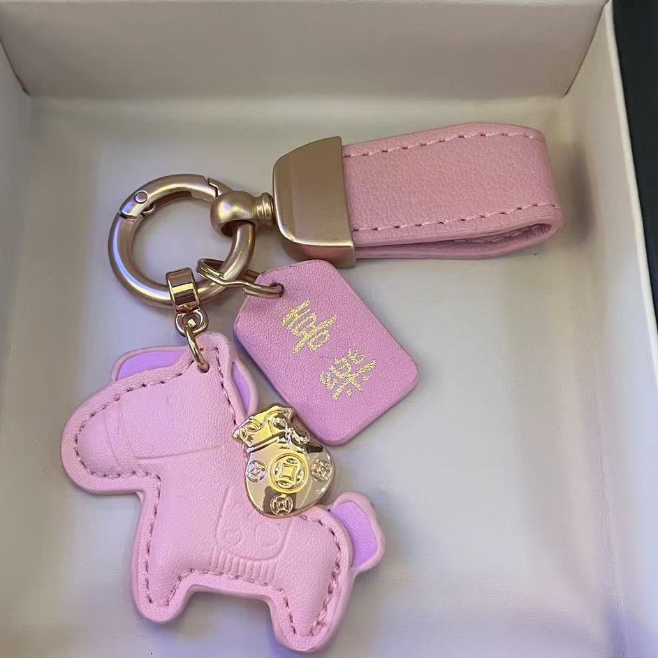 马上有钱手绳马年钥匙扣皮革卡通小马挂件情侣包包网红汽车钥匙扣