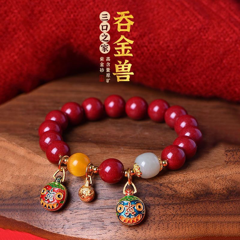 8MM 辰砂【金を呑む獣】ブレスレット,10MM 辰砂【金を呑む獣】ブレスレット,富と幸運をもたらす8MM辰砂色,富と幸運をもたらす10MM辰砂色,辰砂色 毎年平和【麦穂】ブレスレット,辰砂カラー【ダブル貔貅】ブレスレット