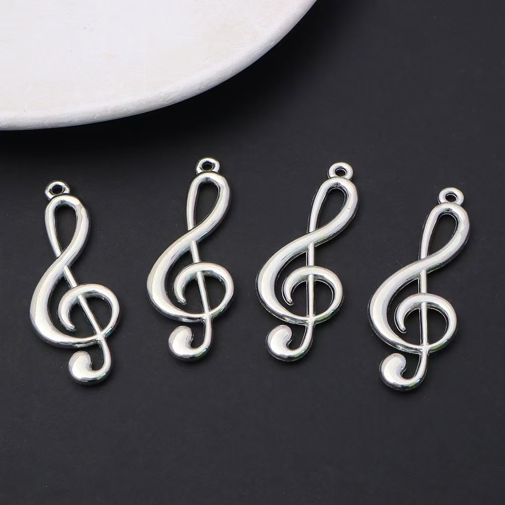 Y2KスタイルDIY合金製ジュエリーアクセサリー シルバーの大きな音符ペンダント卸売ジュエリーアクセサリーネックレス