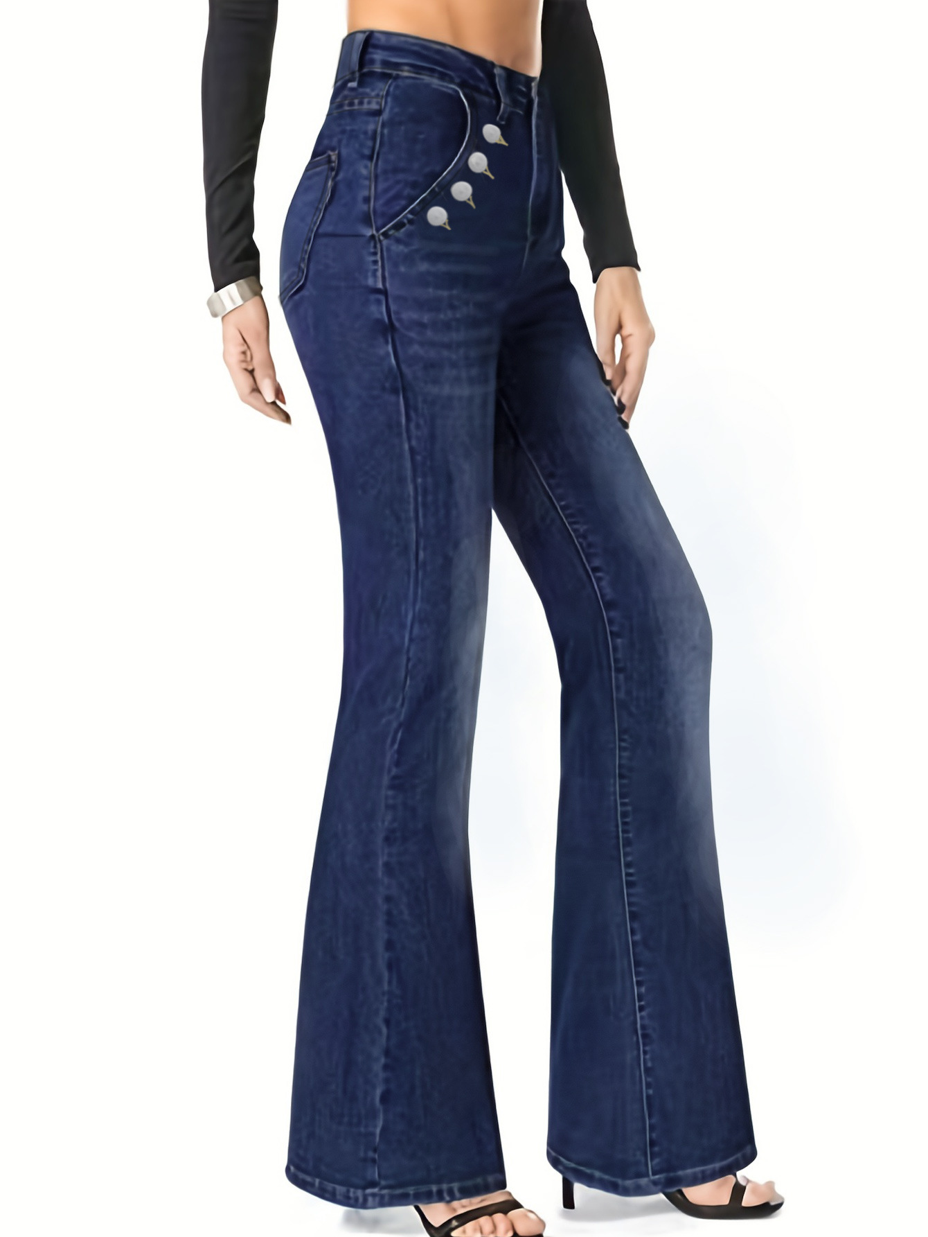 T0010 ブルーのフレアデニムパンツ ストリートファッション レディース ハイウエスト 着痩せ効果 おしゃれ 多彩なコーディネーション