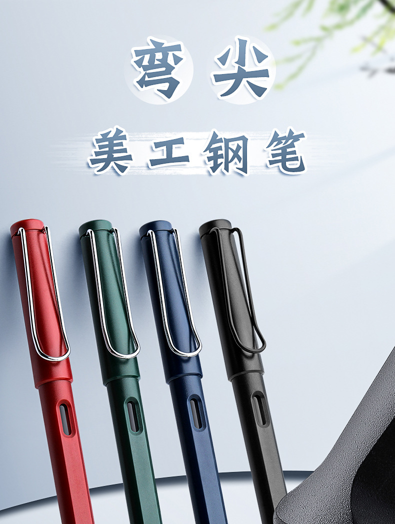 やせた金の曲がった先の肘の美工の万年筆の太い頭は墨の袋の小学生の成人の書道の字の専用の万年筆を交換することができます。