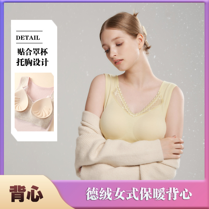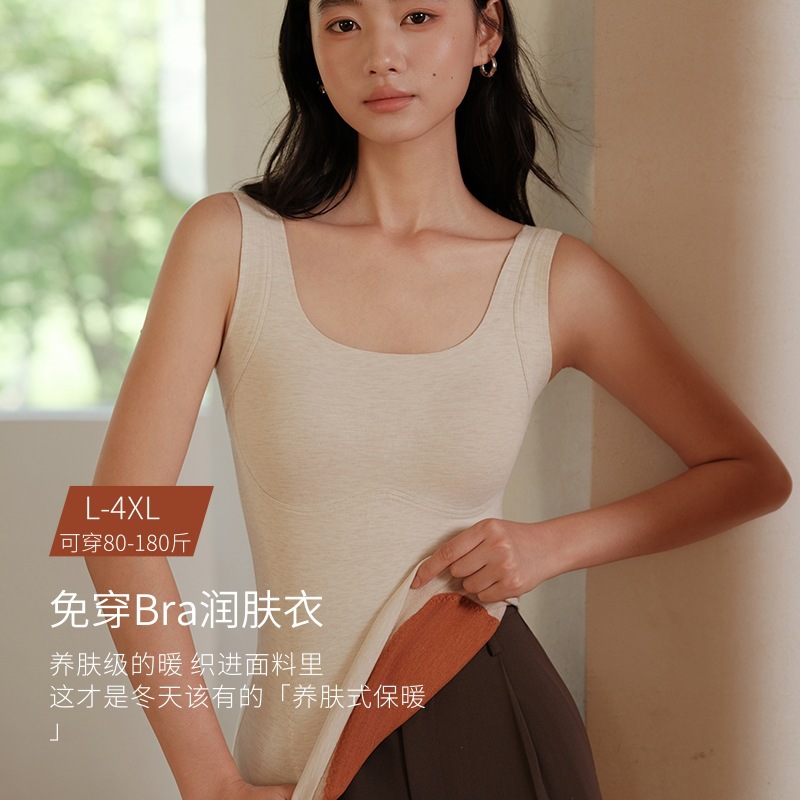 羊绒发热蚕丝无痕保暖背心一体式固定杯修身打底美体保暖马甲内衣