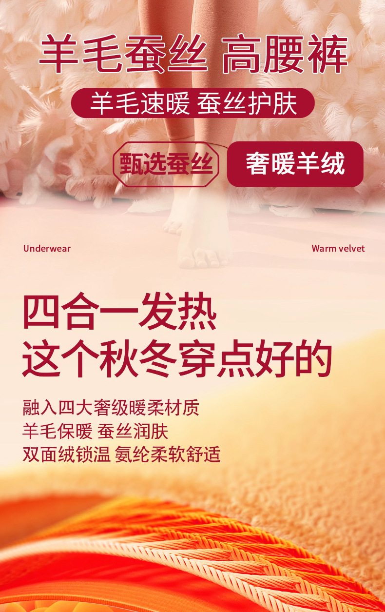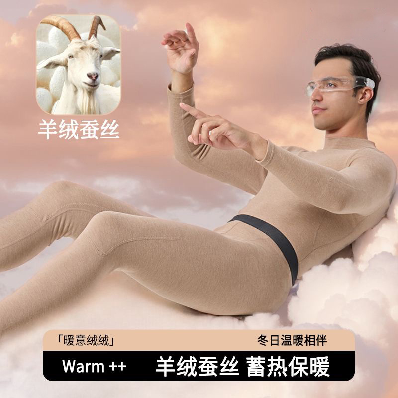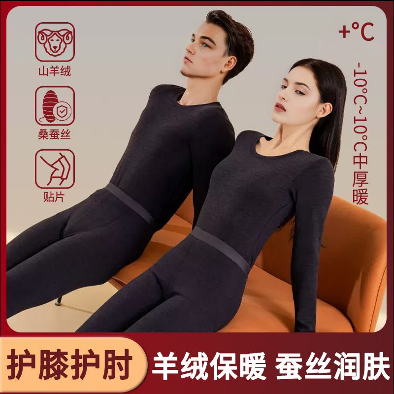 羊绒蚕丝男女情侣保暖内衣套装贴片护膝护肘加绒加厚德绒秋衣秋裤