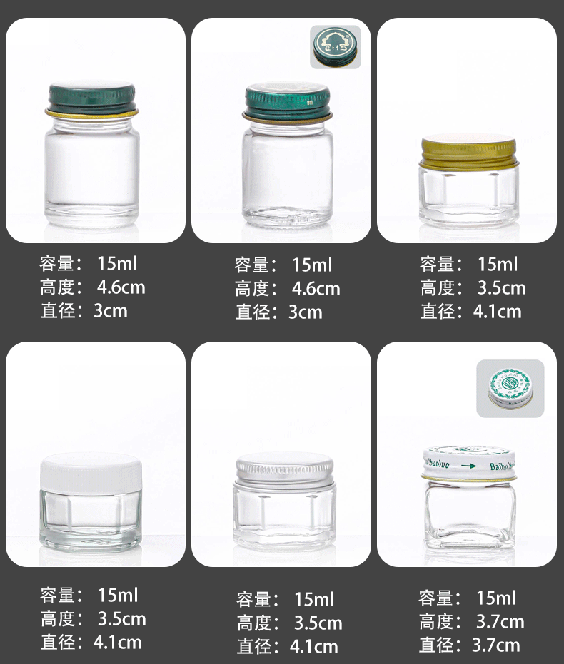 現物卸売りタイ青草虎ペースト15グラム30グラム50グラムガラス瓶清涼油瓶分注瓶空瓶