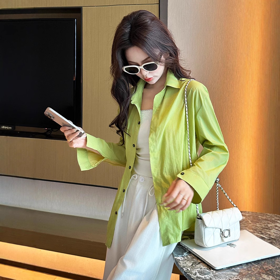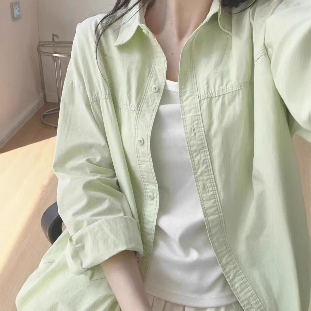 ナイロン純色日焼け止めシャツ2025新型女性夏長t袖女性はゆったりして痩せている