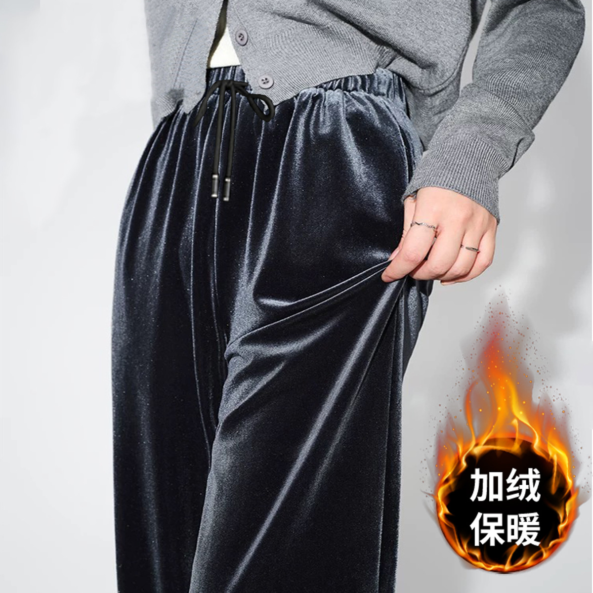 ベルベットの厚手のベルベットの女性は2024秋冬の新しい高級な垂直感がゆるいストレートのカジュアルなワイドパンツを出産した