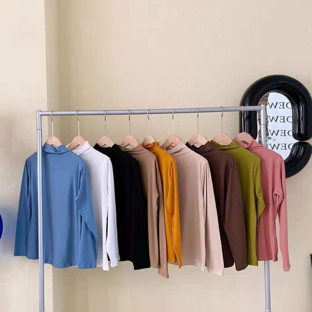 9色のモーダルマスクの半高襟の底のシャツの女性の秋冬の新型の超高弾は長袖のtシャツの上着を修理します。