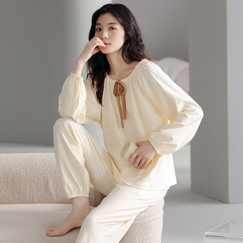 パジャマ女性春秋タイプ純綿ワッフル長袖ズボン少女純綿家庭服カジュアルスーツ秋冬