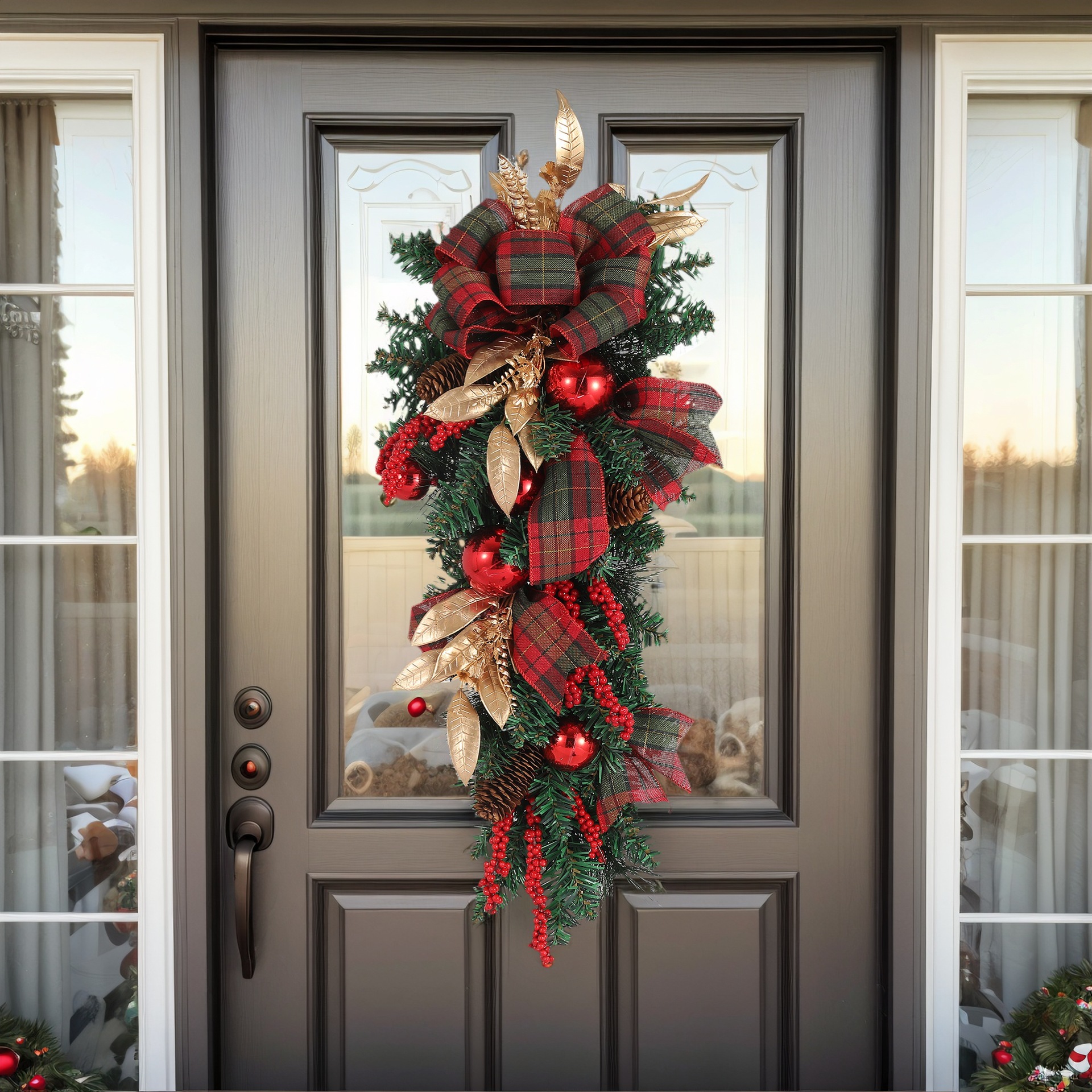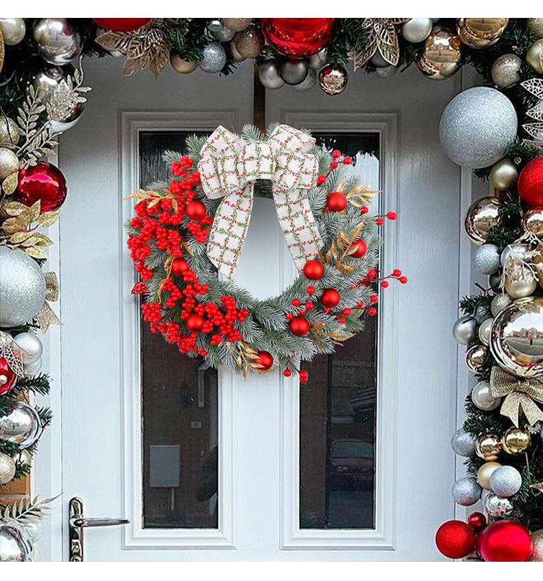 创意蝴蝶结圣诞铃铛倒挂树批发新款红果松针花环开业店庆圣诞装饰