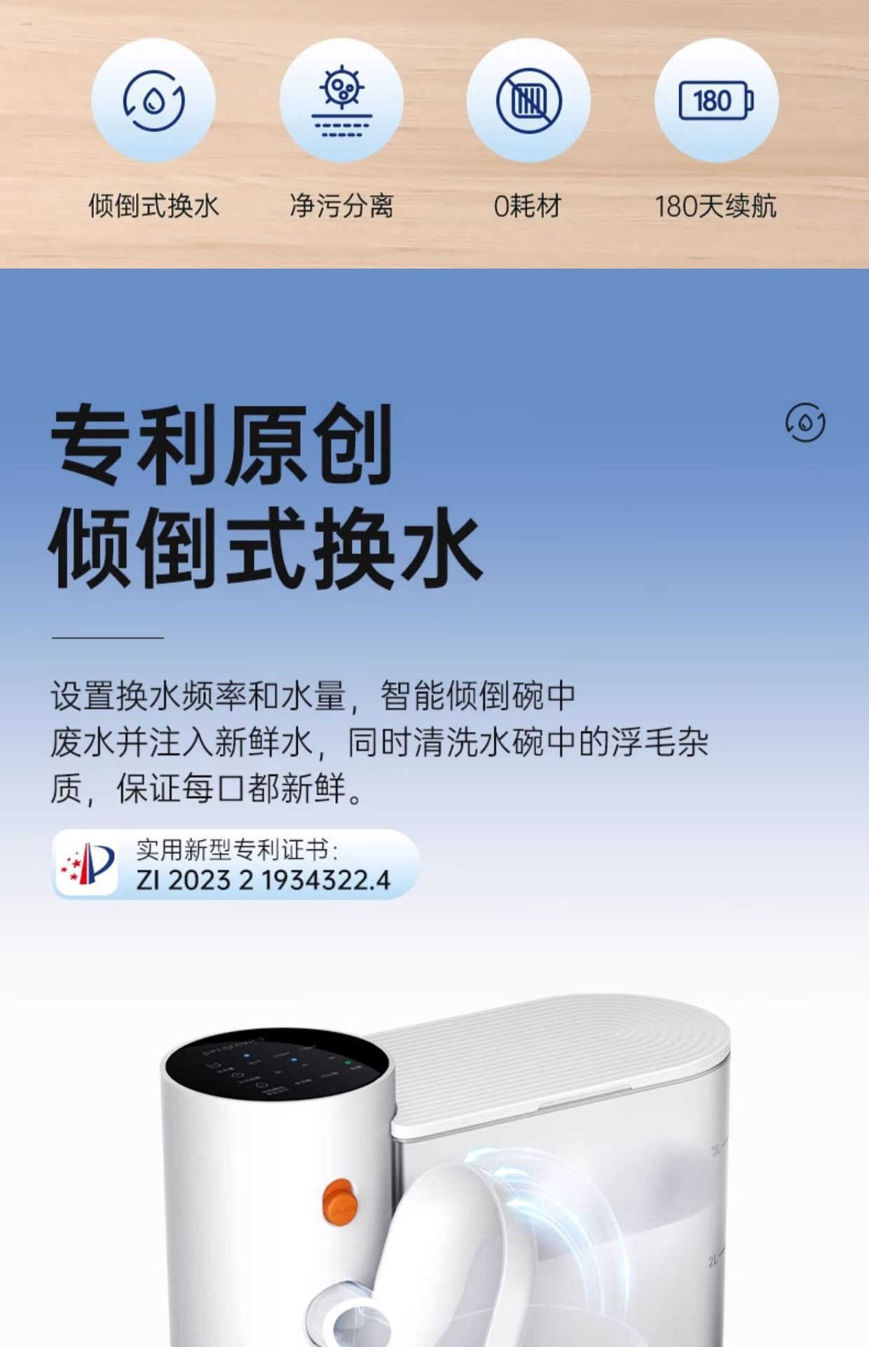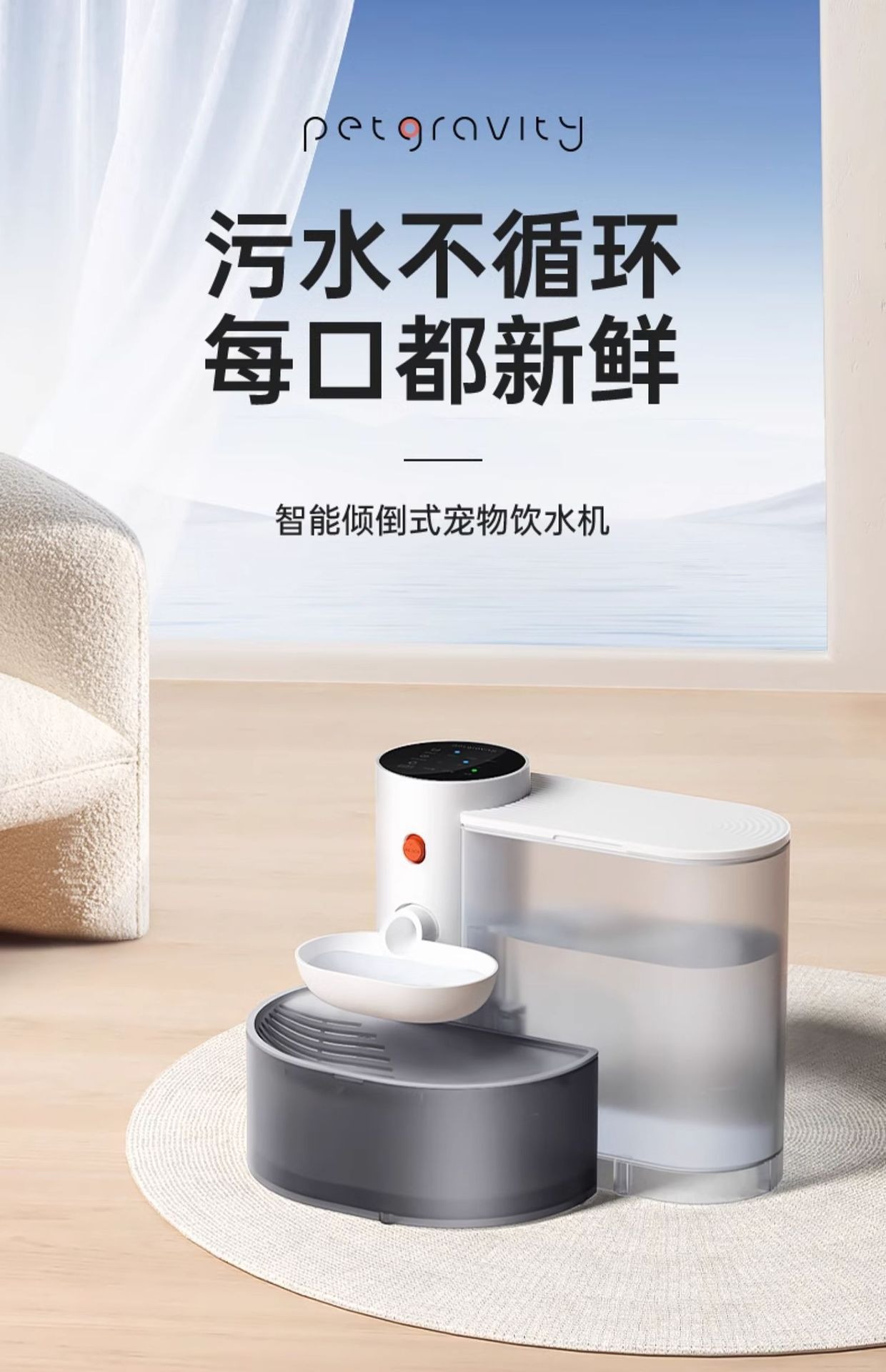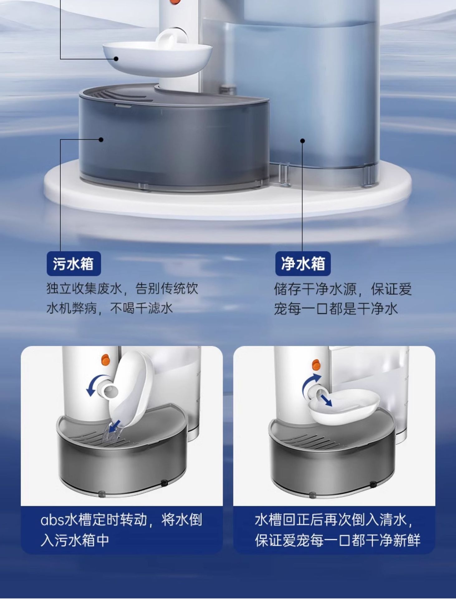 跨境爆款倾倒式猫咪饮水机净污分离无线插电自动喂水器宠物饮水器