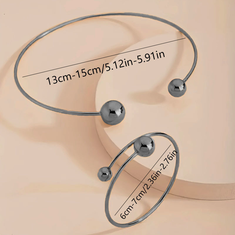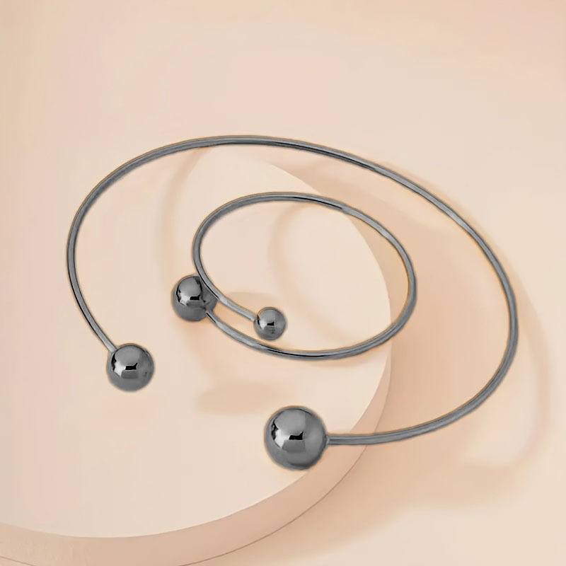 ヨーロッパとアメリカのクロスボーダーファッションミニマリストスタイルメタル幾何学的なボールレディースオープンネックリングブレスレット2点セット卸売