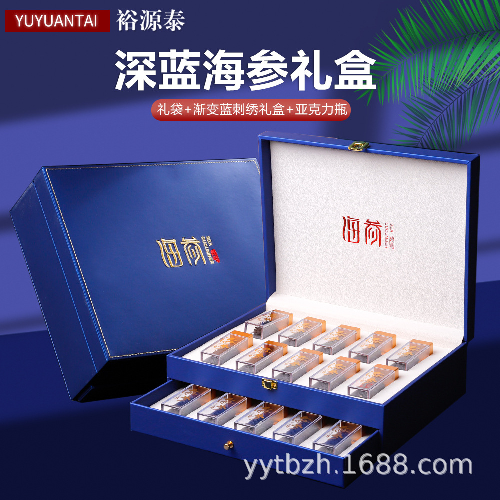 ビジネス引き出し式ナマコ包装箱干しナマコ礼箱空箱高級ギフトボックス20本入りの尊い青い木箱