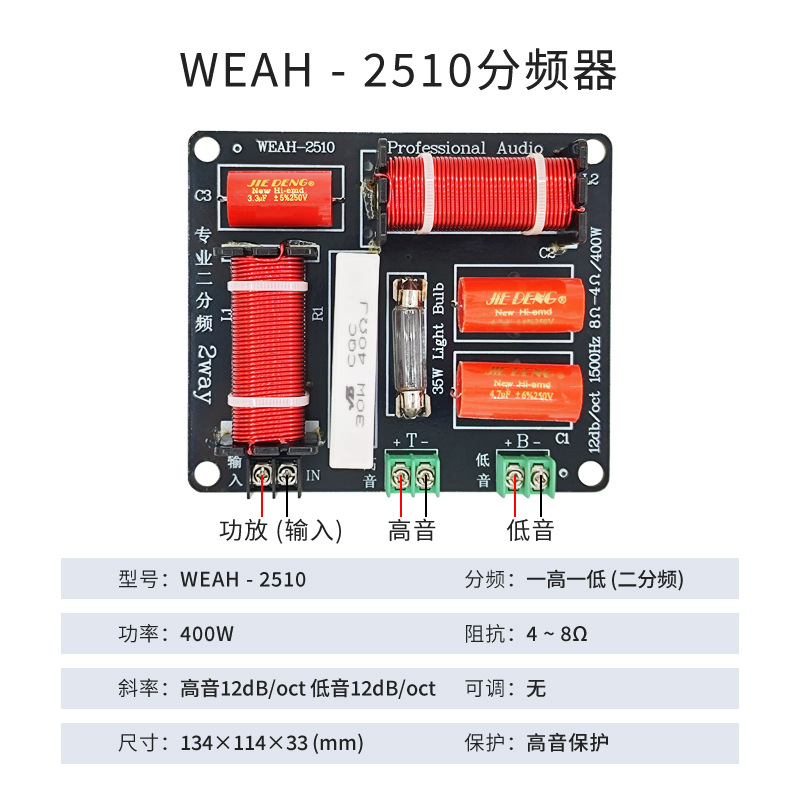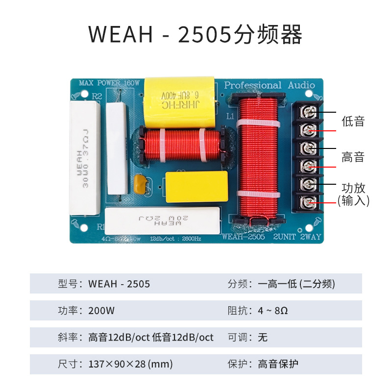 专业舞台家用音箱分频器二分频 发烧高保真高低二路音响分频器