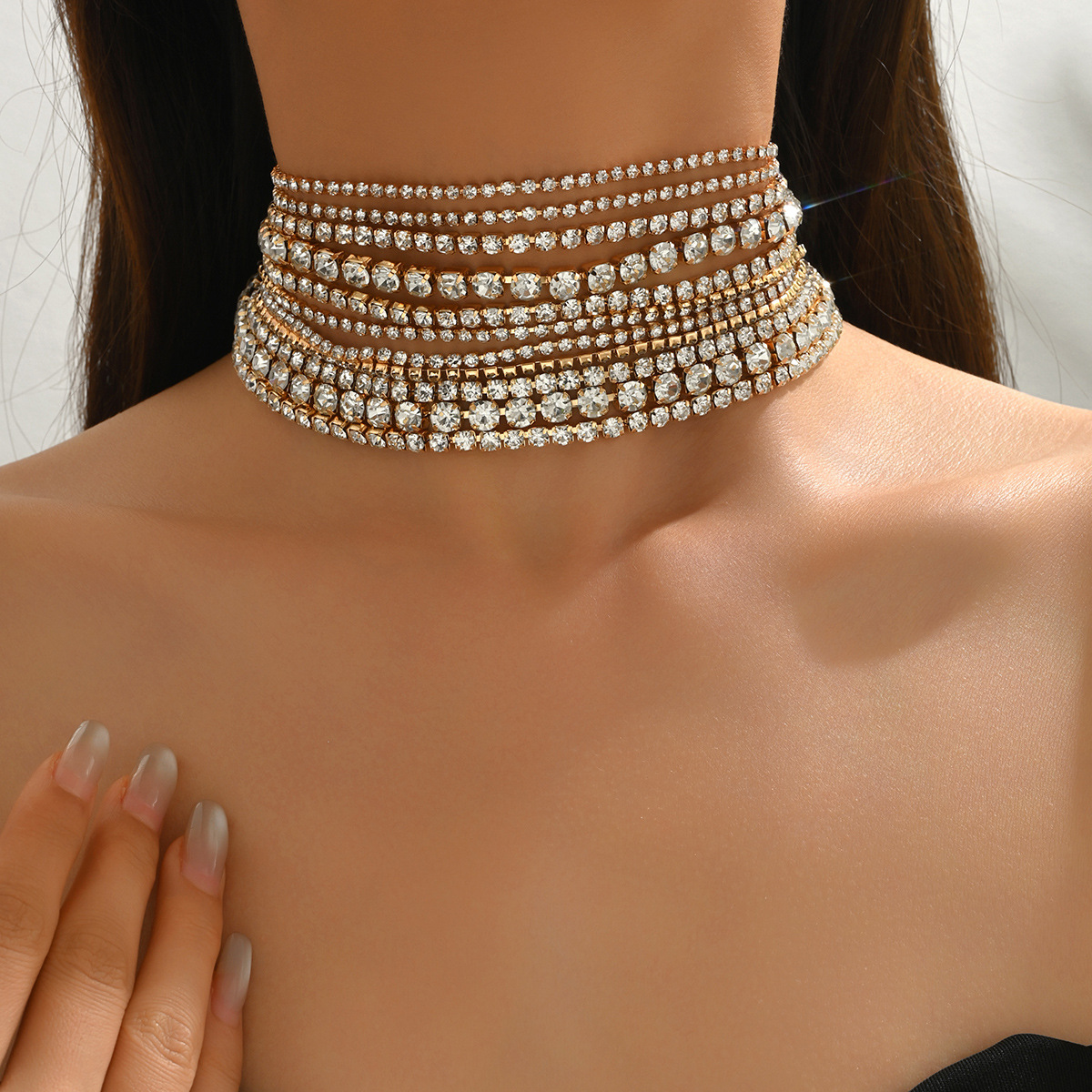 跨境 镶钻多层项链欧美宴会走秀个性夸张时尚潮流颈链女Choker