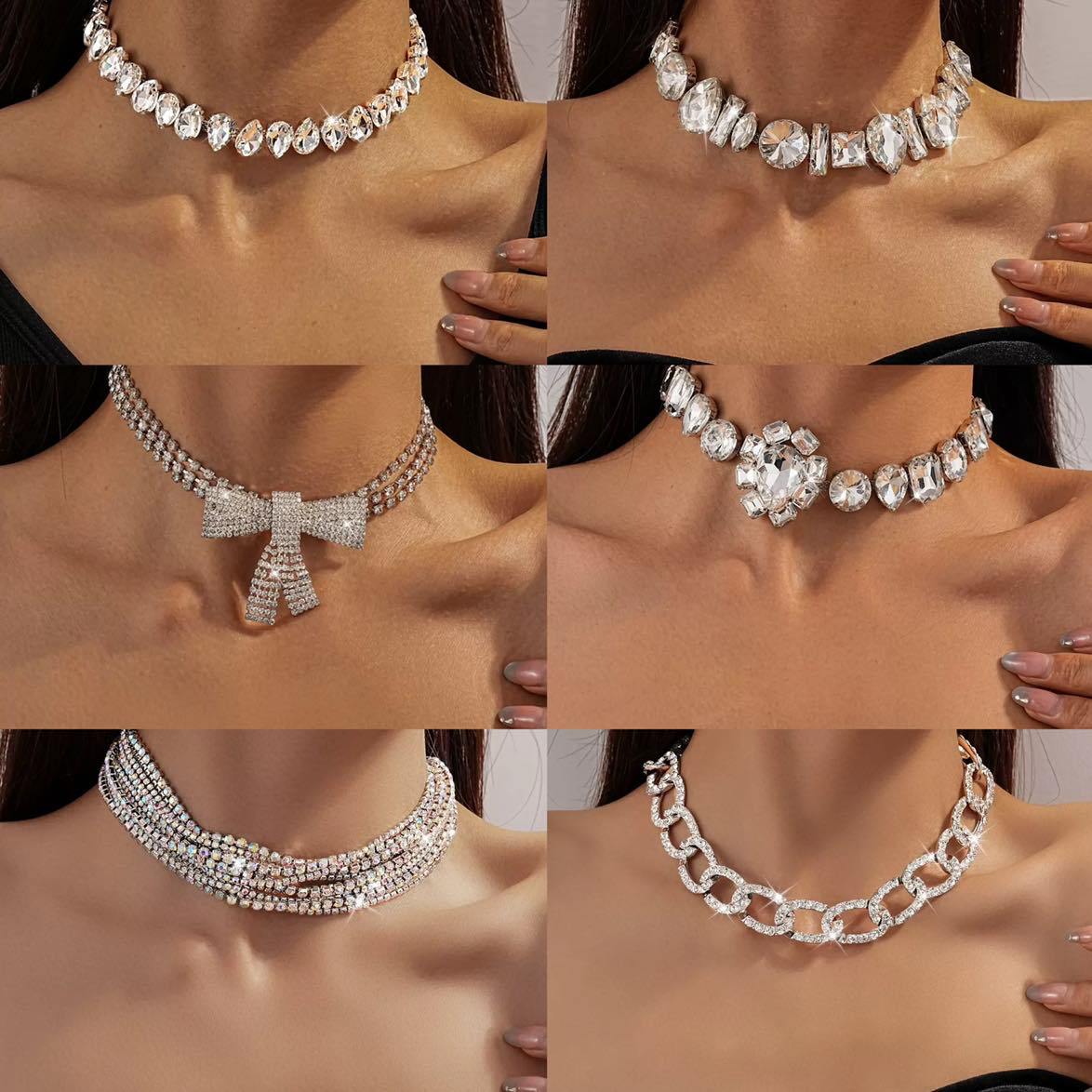 クロスボーダーネックレス レディース 欧米風 ニッチ ラインストーンネックレス 外貿ジュエリー 個性的なアクセサリー 高級感 チョーカー